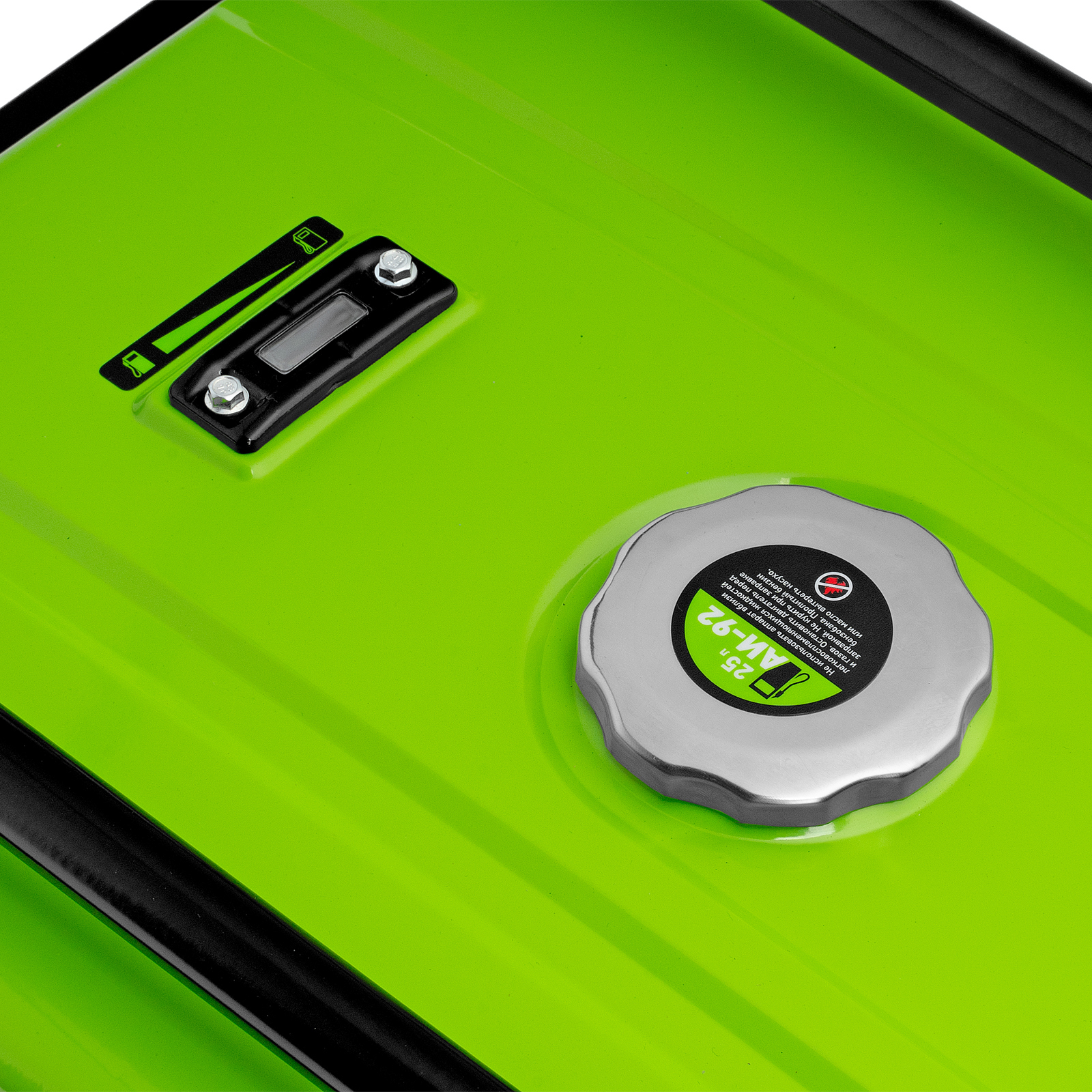 - Контроль рабочих параметров — встроенный вольтметр позволяет отслеживать напряжение в сети, а топливный индикатор — уровень бензина в баке.