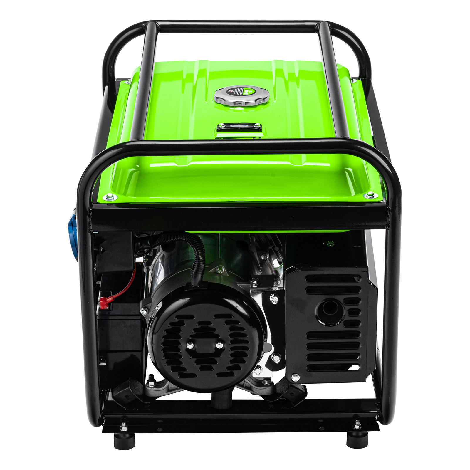 Бензиновый генератор Сибртех БС-6500Э 94548 максимальной мощностью 5,5 кВт, с 4-тактным двигателем, электростартером и баком объемом 25 л, выдает напряжение 230 В и используется для электроснабжения на даче, на строительной площадке, в магазине, в мастерской или гараже. Мощности хватает для обеспечения работы электроинструмента или одновременного подключения 4 ламп накаливания, телевизора, плиты и холодильника. Благодаря электростартеру запуск генератора осуществляется одним поворотом ключа.