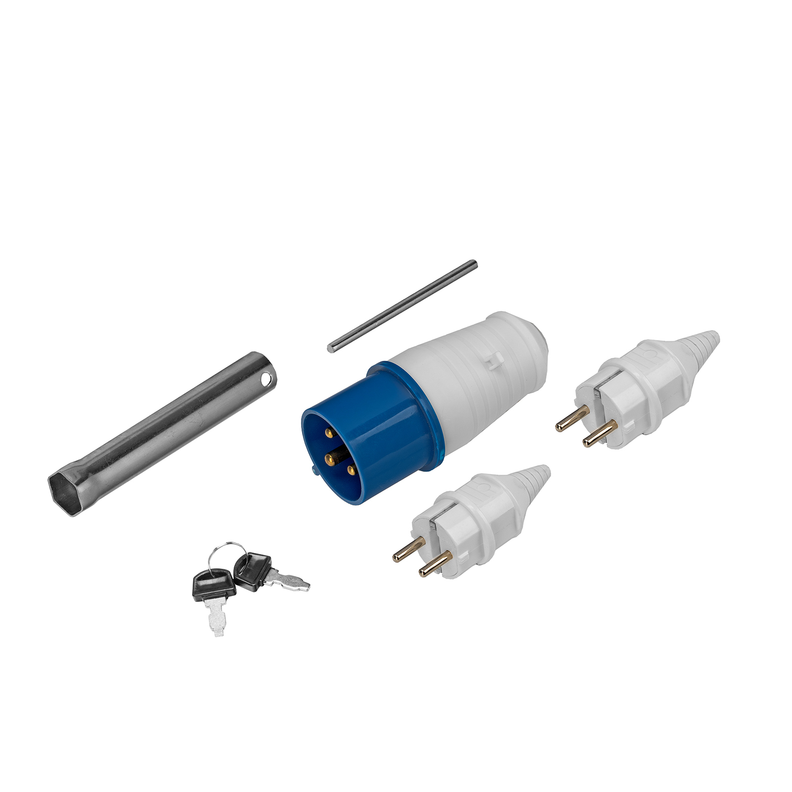 Генератор - 1 штКлюч зажигания - 2 штКлюч свечной - 1 штВилка 230В/16А - 2 штВилка 230В/32А - 1 штРуководство по эксплуатации с гарантийным талоном - 1 штБатарея аккумуляторная - 1 шт