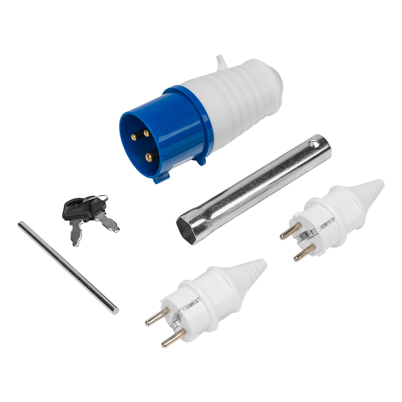 Генератор - 1 штКлюч зажигания - 2 штКлюч свечной - 1 штВилка 230В/16А - 2 штВилка 230В/32А - 1 штРуководство по эксплуатации с гарантийным талоном - 1 штБатарея аккумуляторная - 1 шт