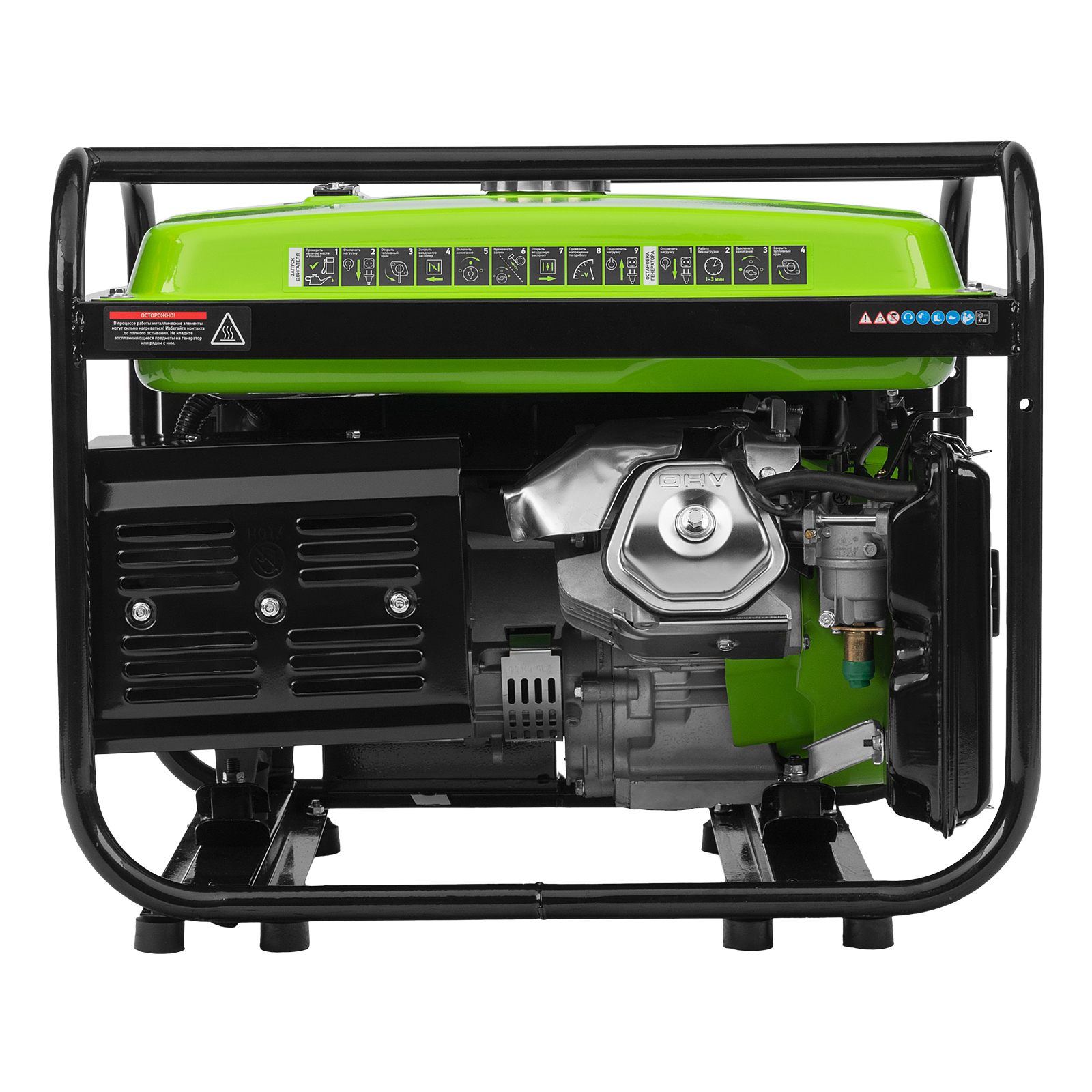 - Надежность — медная обмотка альтернатора и стальной распредвал выдерживают высокие нагрузки, прочная стальная рама защищает от повреждений.