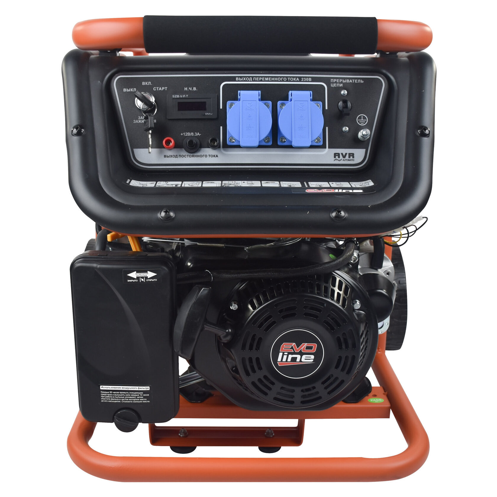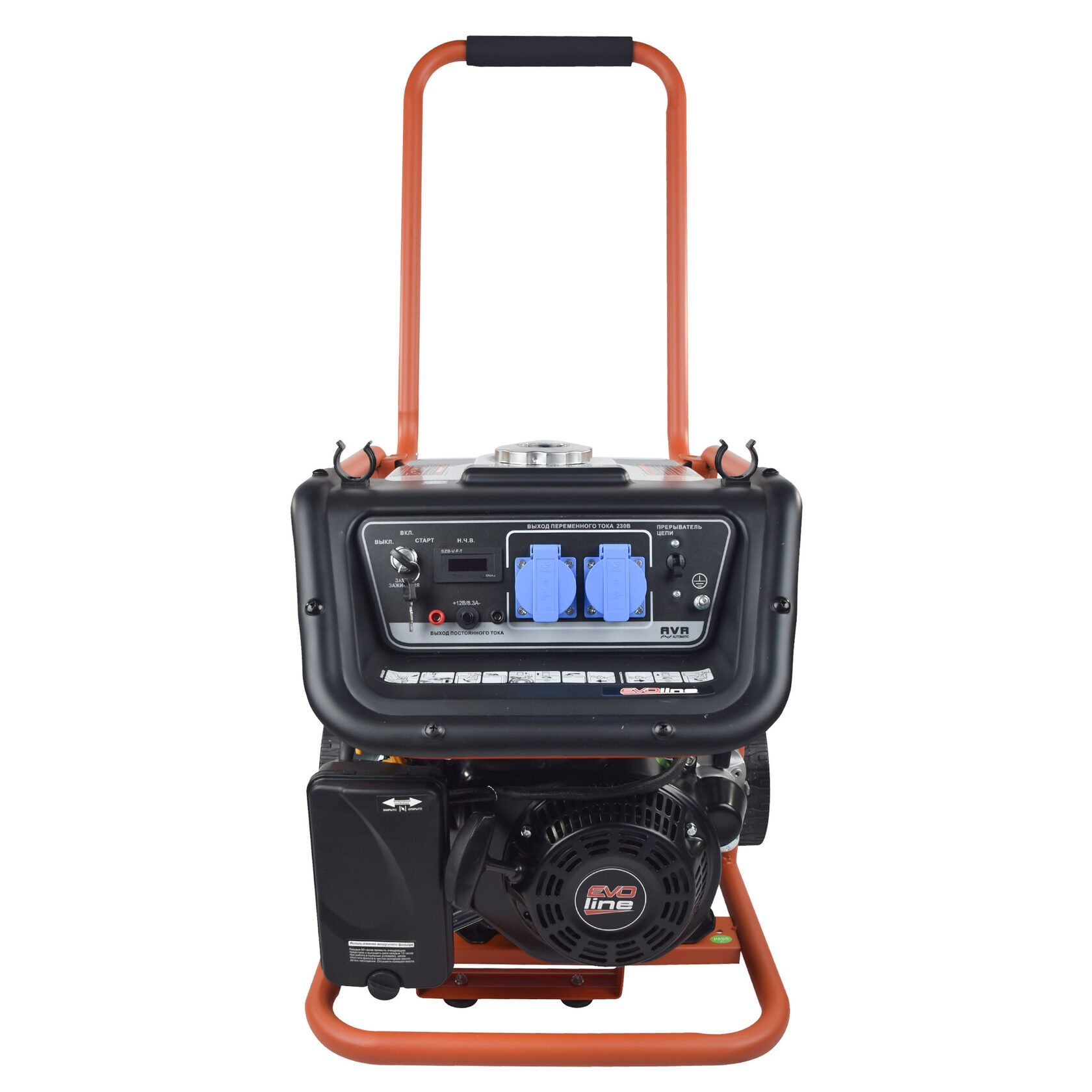 Электрогенератор EVOline KB 3300 E – бензиновый однофазный (1 фазный) генератор с максимальной мощностью 3 кВА. Силовым агрегатом данной модели является четырехтактный двигатель ZONGSHEN ZS170FE. Генератор оснащен электрическим запуском. Рама выполнена из высококачественной стали, которая служит не только для защиты двигателя, но и для удобной транспортировки электростанции. Объем топливного бака составляет 15 литров, что дает примерно 10 часов непрерывной работы в зависимости от нагрузки. Уровень шума при работе генератора составляет 76,5 дБ. Данная модель идеально подходит как для дома, так и для малого или среднего бизнеса. Оснащена транспортировочным комплектом с колесами, счетчиком мото-часов, электростартером и 2-мя розетками, имеет размер (590 x 440 x 500 мм) и вес (52 кг). Гарантия составляет 2 года.