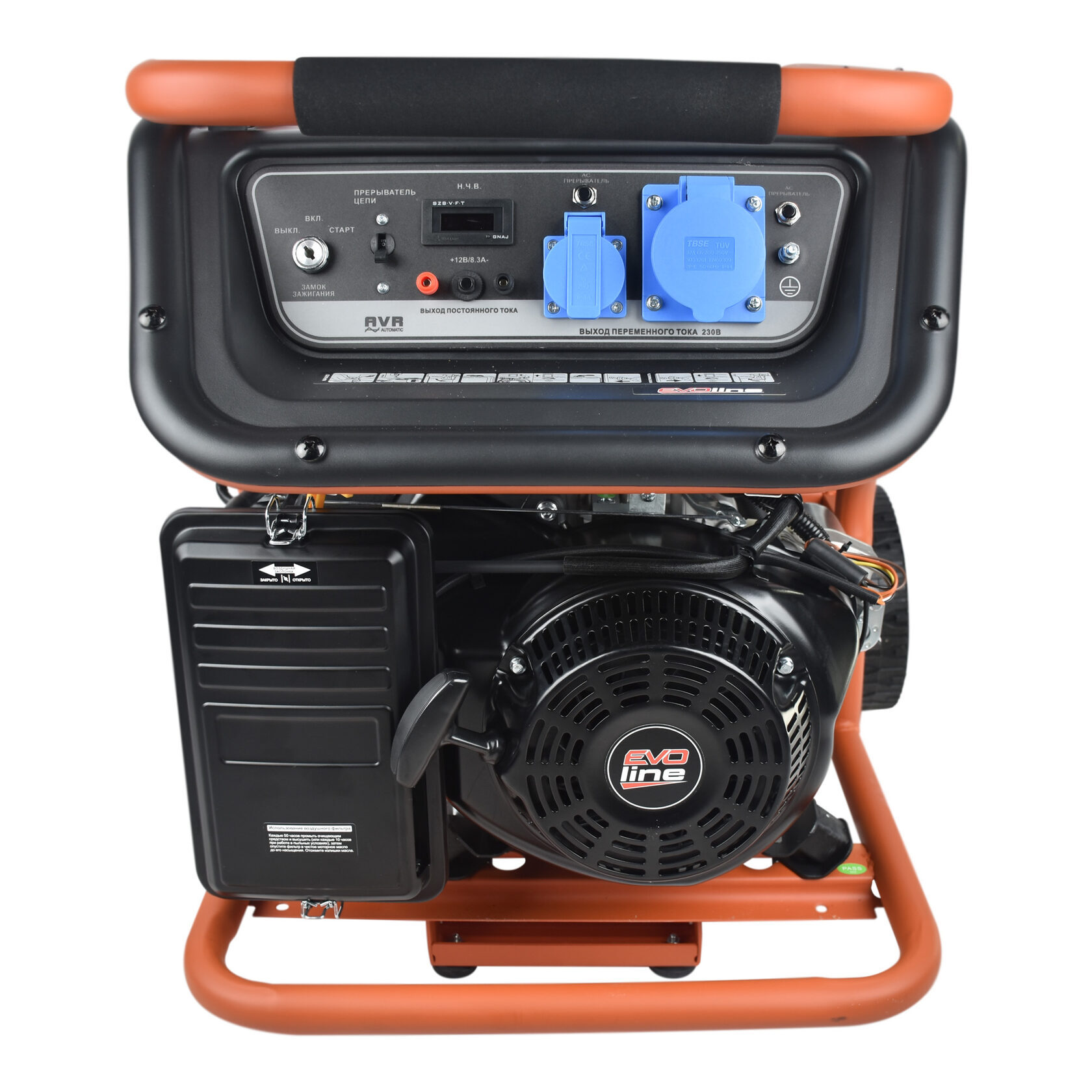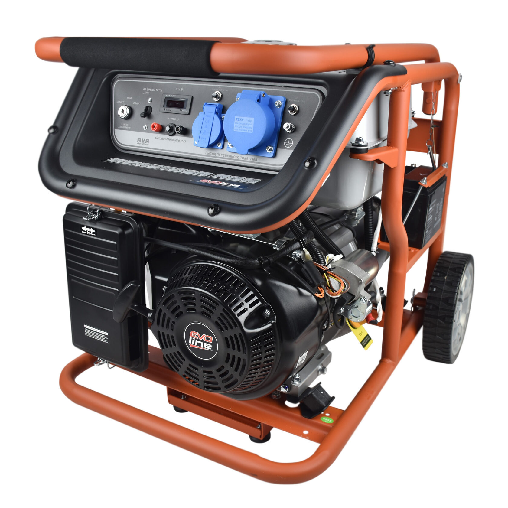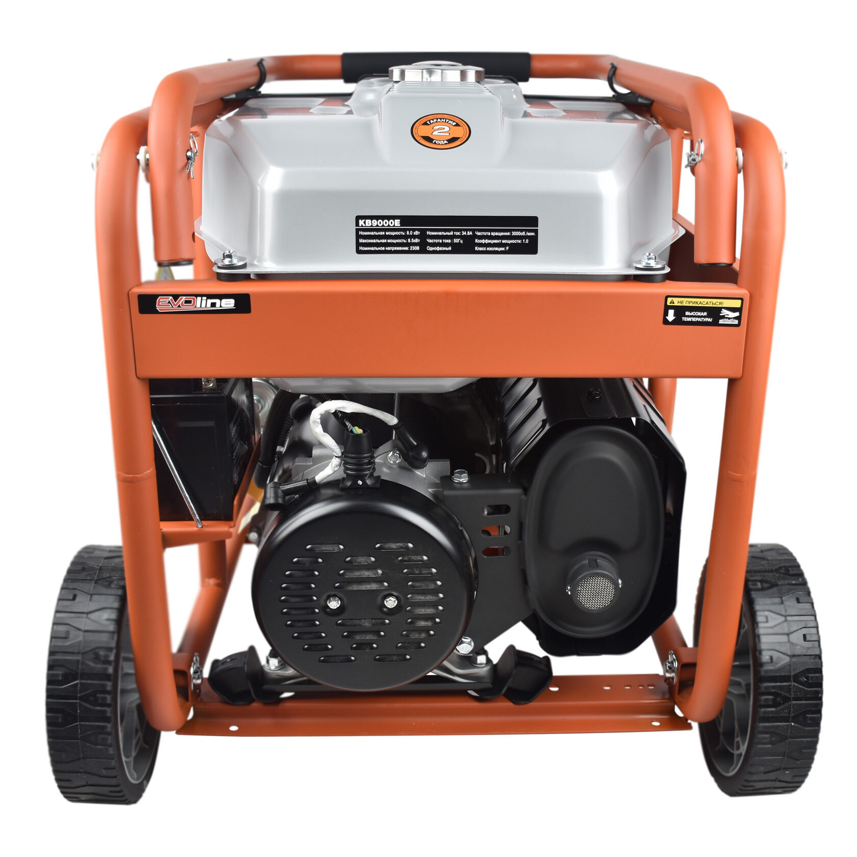 Электрогенератор EVOline KB 9000 E – бензиновый однофазный (1 фазный) генератор с максимальной мощностью 8,5 кВА. Силовым агрегатом данной модели является четырехтактный двигатель ZONGSHEN GB 460 E. Генератор оснащен электрическим запуском. Рама выполнена из высококачественной стали, которая служит не только для защиты двигателя, но и для удобной транспортировки электростанции. Объем топливного бака составляет 32 литра, что дает примерно 11 часов непрерывной работы в зависимости от нагрузки. Уровень шума при работе генератора составляет 76,5 дБ. Данная модель идеально подходит как для дома, так и для малого или среднего бизнеса. Оснащена транспортировочным комплектом с колесами, счетчиком мото-часов, электростартером и 2-мя розетками (одна из которых - силовая, т.е. на 32А), имеет размер (700х530х590 мм) и вес (99 кг). Гарантия составляет 2 года.