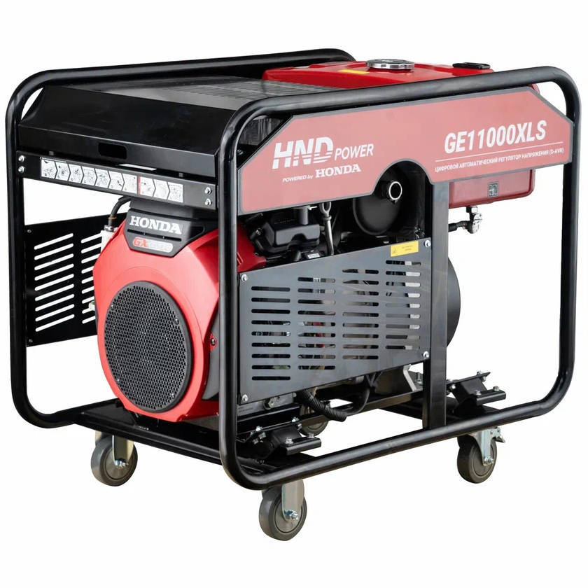 Бензиновый генератор HND GE 11000 XLS - это мощное и надежное устройство, которое обеспечит независимое электроснабжение даже в самых требовательных условиях. Он оснащен высокопроизводительным двигателем HONDA GX630, который работает на четырехтактном V-образном принципе и имеет рабочий объем 688 см3. Генератор HND GE 11000 XLS может быть запущен с помощью электростартера, что делает запуск быстрым и удобным. Регулирование напряжения осуществляется посредством технологии D-AVR, обеспечивая стабильность выходного напряжения.