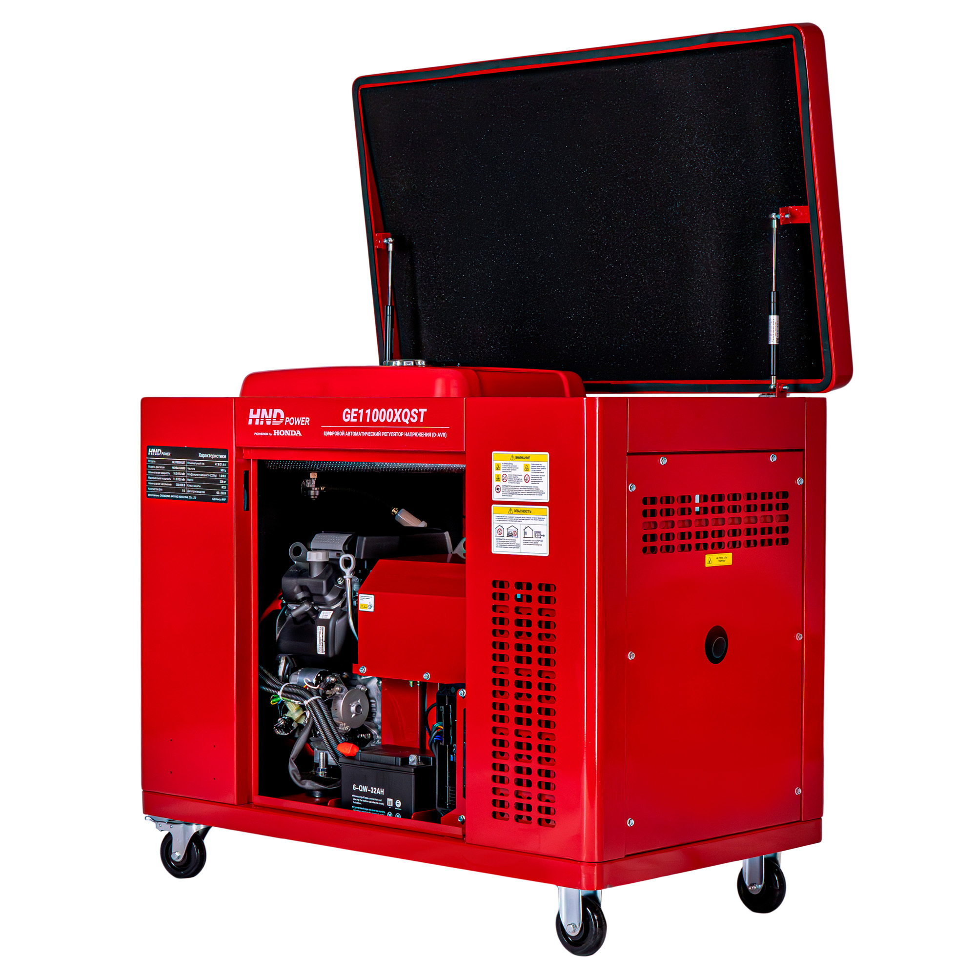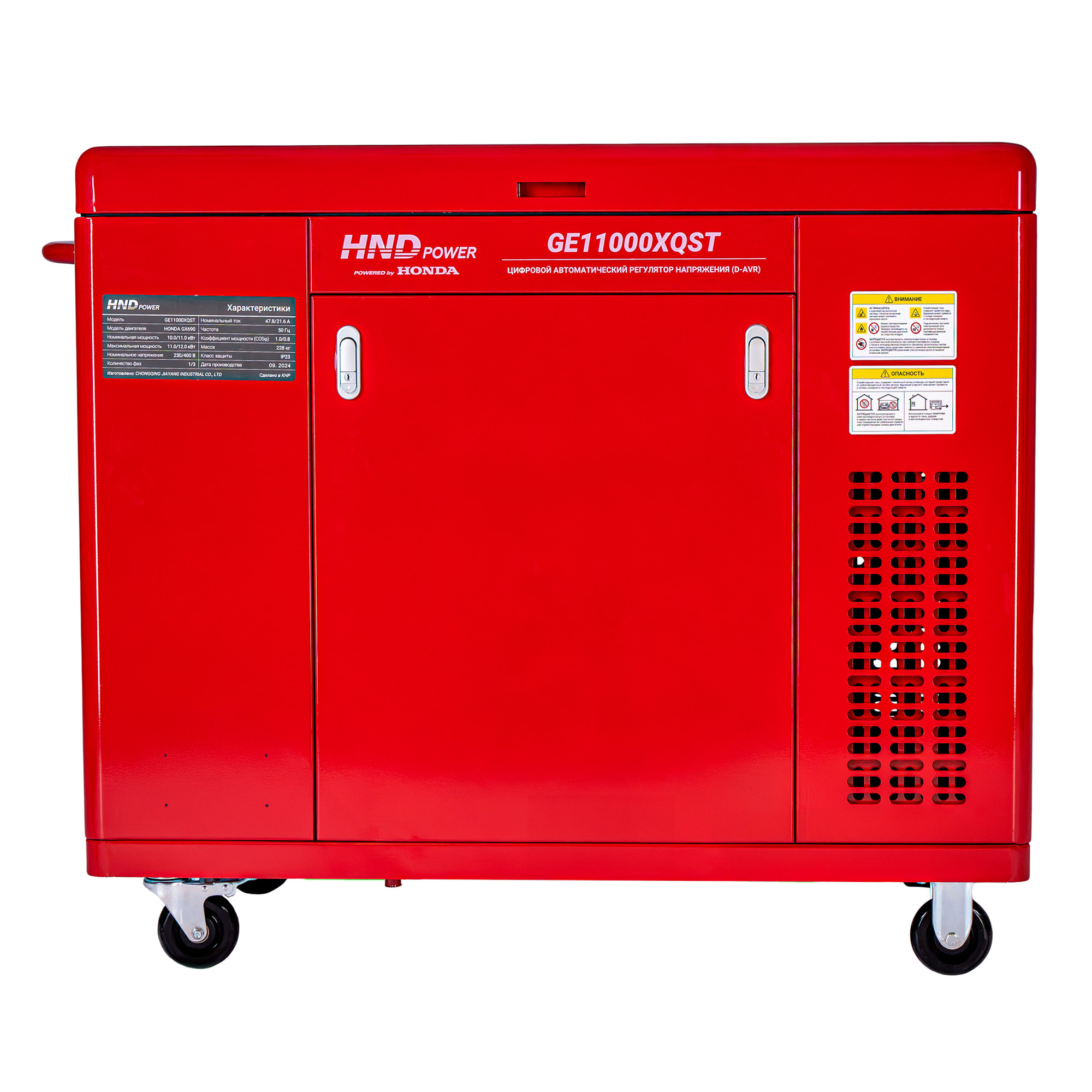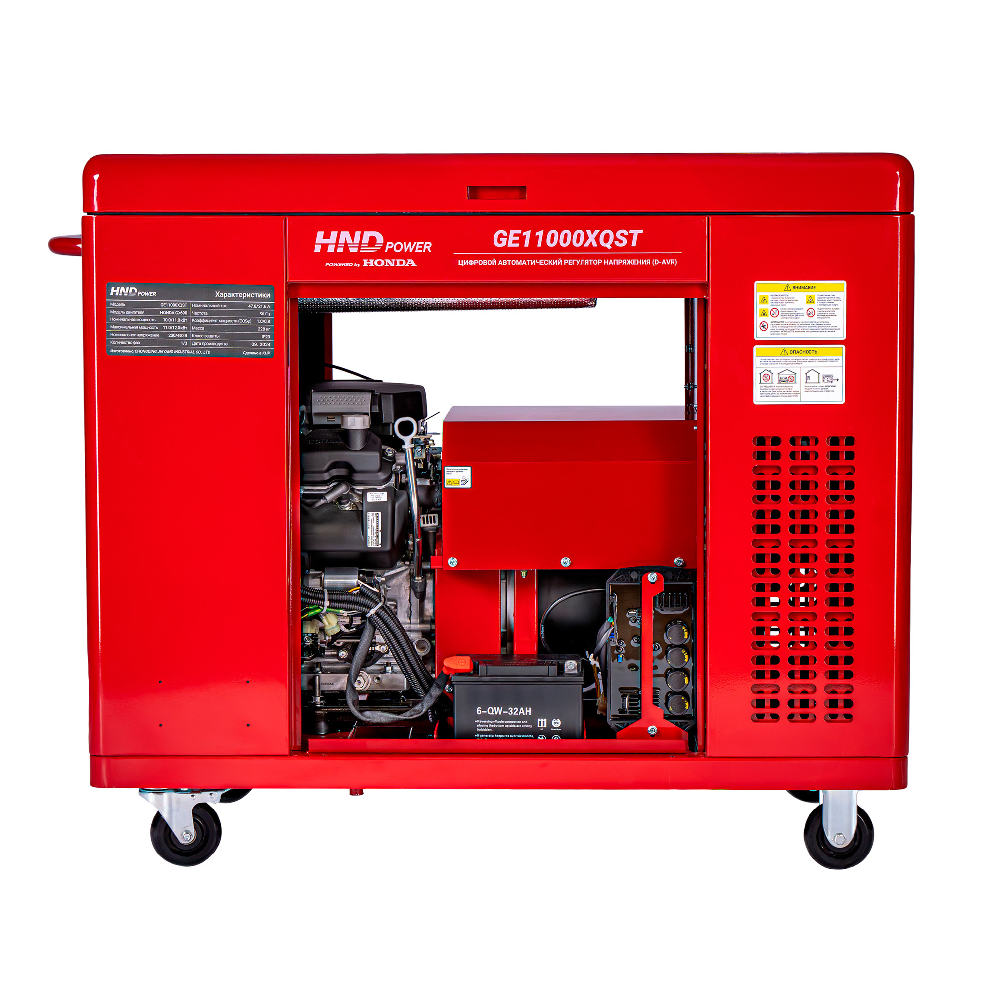 В остальном же HND GE 11000XQST это все тот же надежный генератор, который может работа как однофазном, так и трехфазном режиме (есть переключатель). Максимальная мощность генератора составляет 11 кВт (1ф) / 12 кВт (3ф), а номинальная - 10 кВт (1ф) / 11 кВт (3ф).