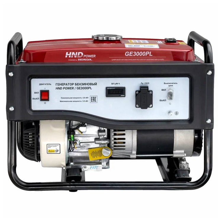 Генератор бензиновый HND GE 3000 PL - надежное и мощное устройство, которое обеспечит независимое электроснабжение в любое время. Он оснащен моделью двигателя HONDA GP200, четырехтактным OHV одноцилиндровым двигателем с рабочим объемом 196 см3. Система пуска двигателя барабанно-шнуровая с возвратной пружиной обеспечивает удобное и надежное запускание.