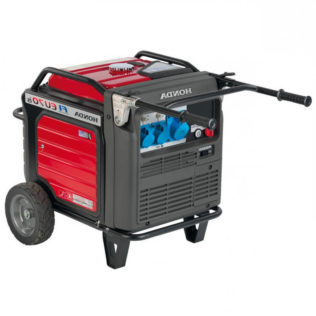 Для тихой работы предусмотрен шумозащитный кожух, благодаря чему бензоэлектрогенератор Honda EU 70iS не мешает окружающим отдыхать и работать. Устройство можно без труда транспортировать к нужному месту, поскольку оно комплектуется выдвижными рукоятками и колесами. Максимальная мощность генератора составляет 7 кВт.