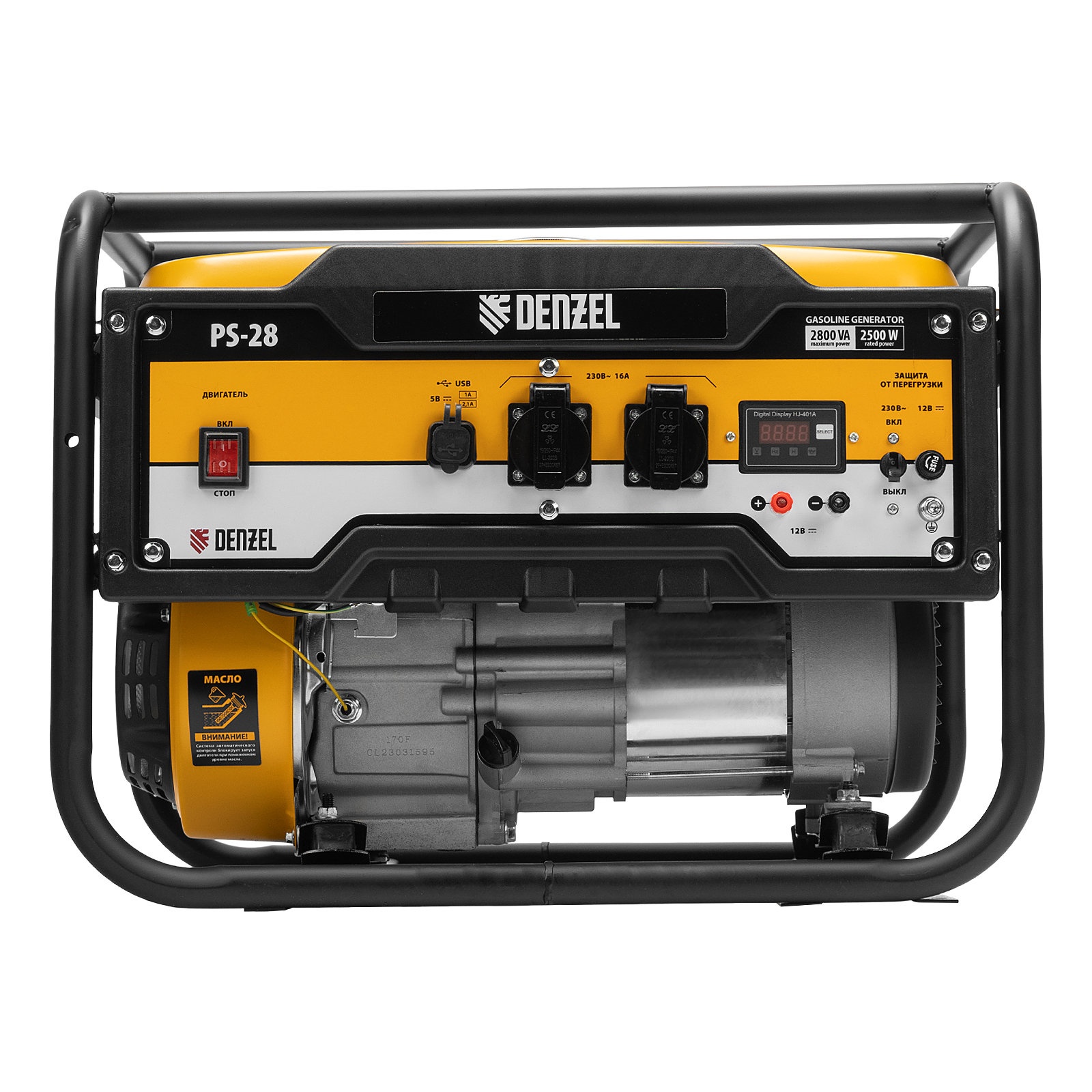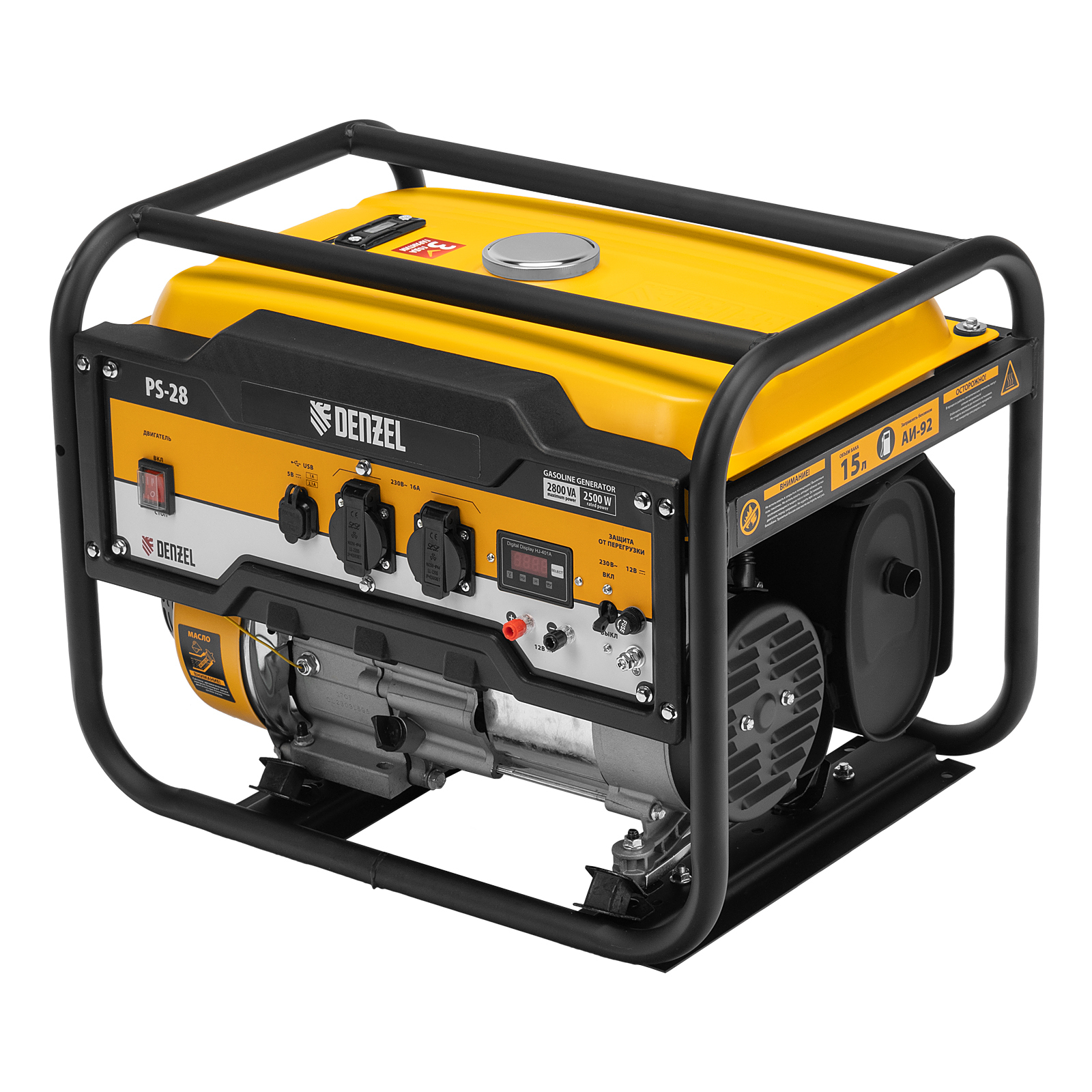 Генератор бензиновый PS 28, 2.8 кВт, 230 В, 15 л, ручной стартер Denzel