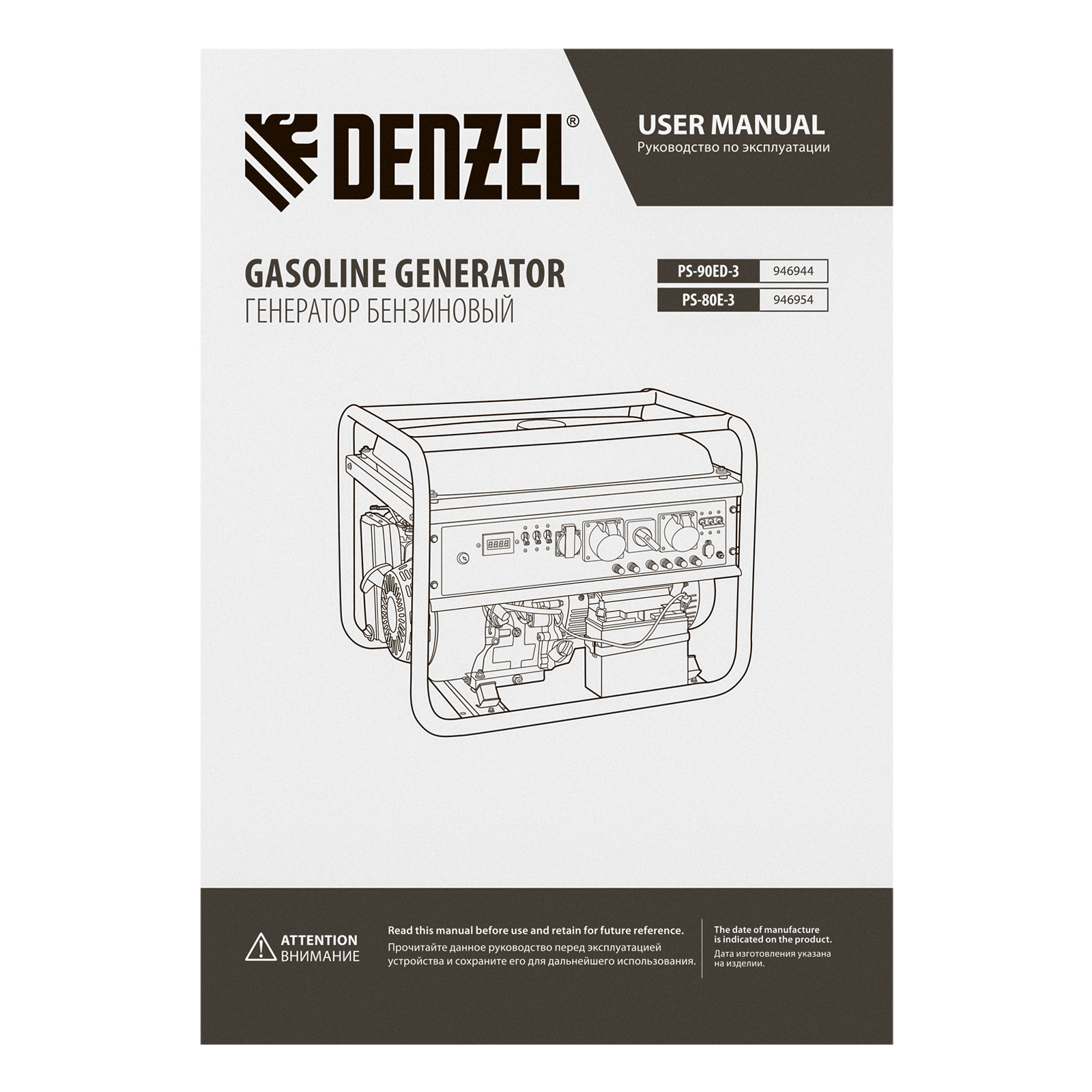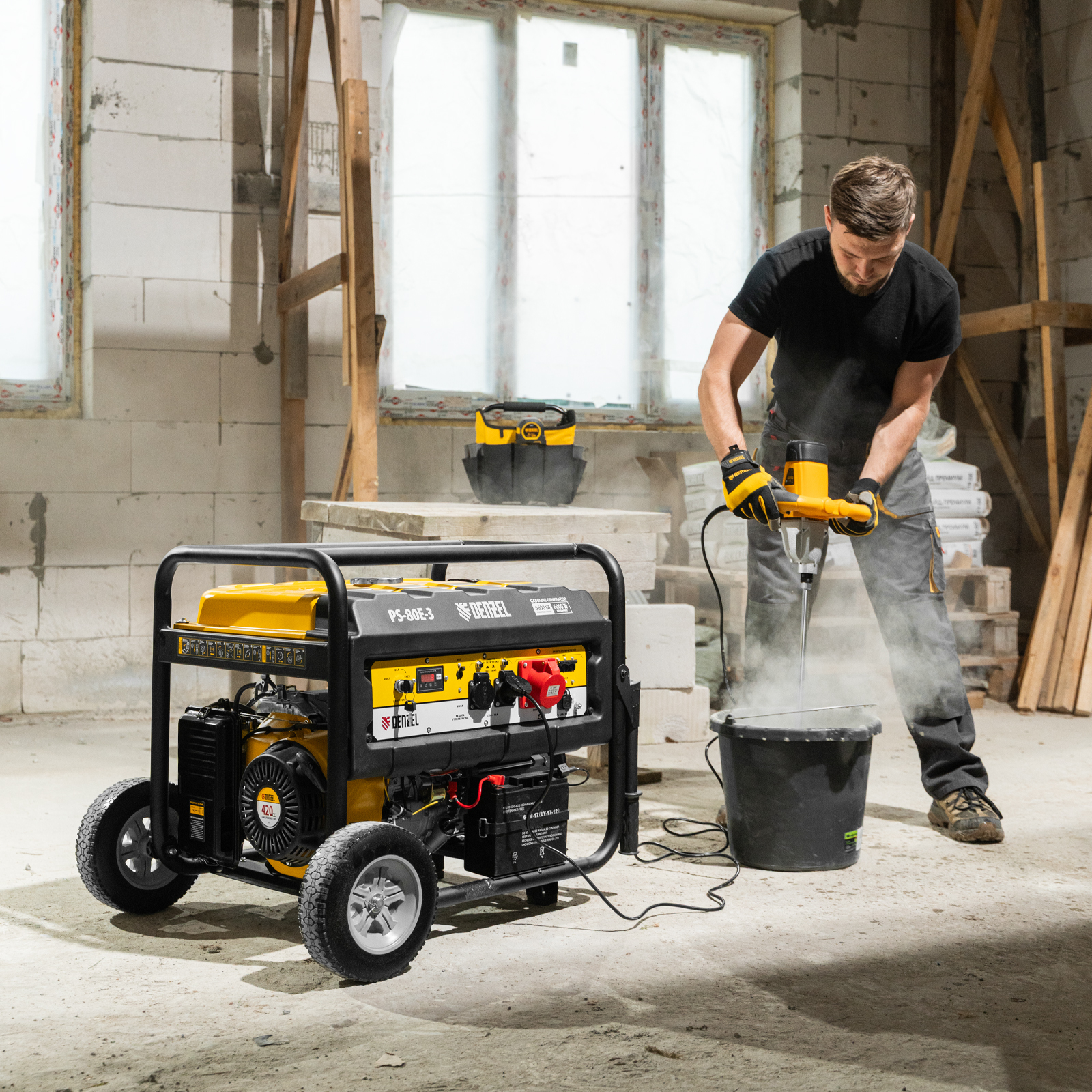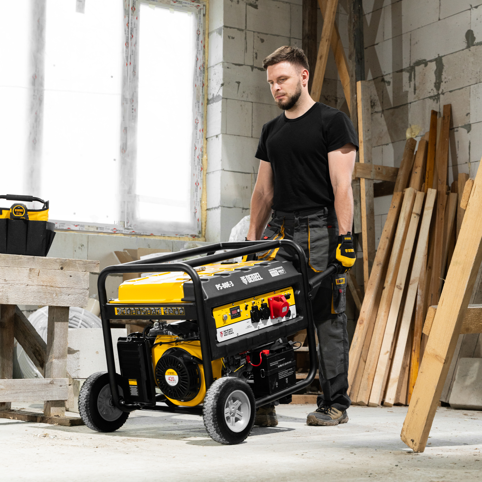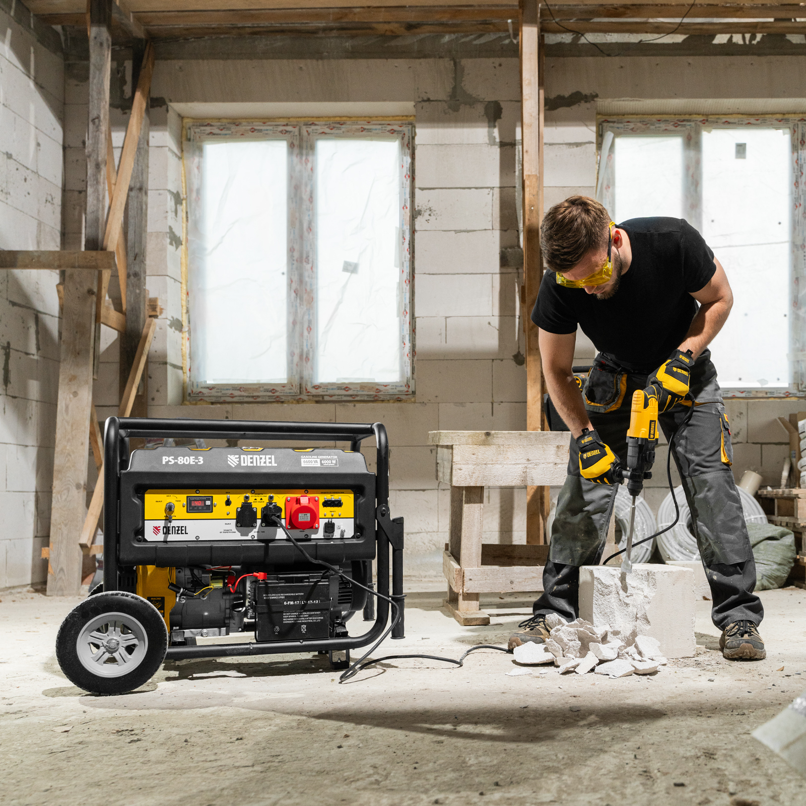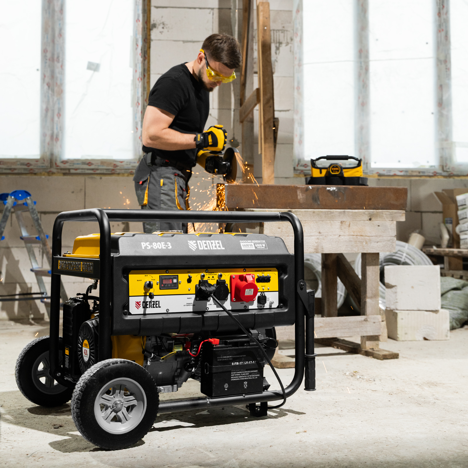 Генератор бензиновый PS 80 E-3, 6.6 кВт, 400 В, 25 л, электростартер Denzel