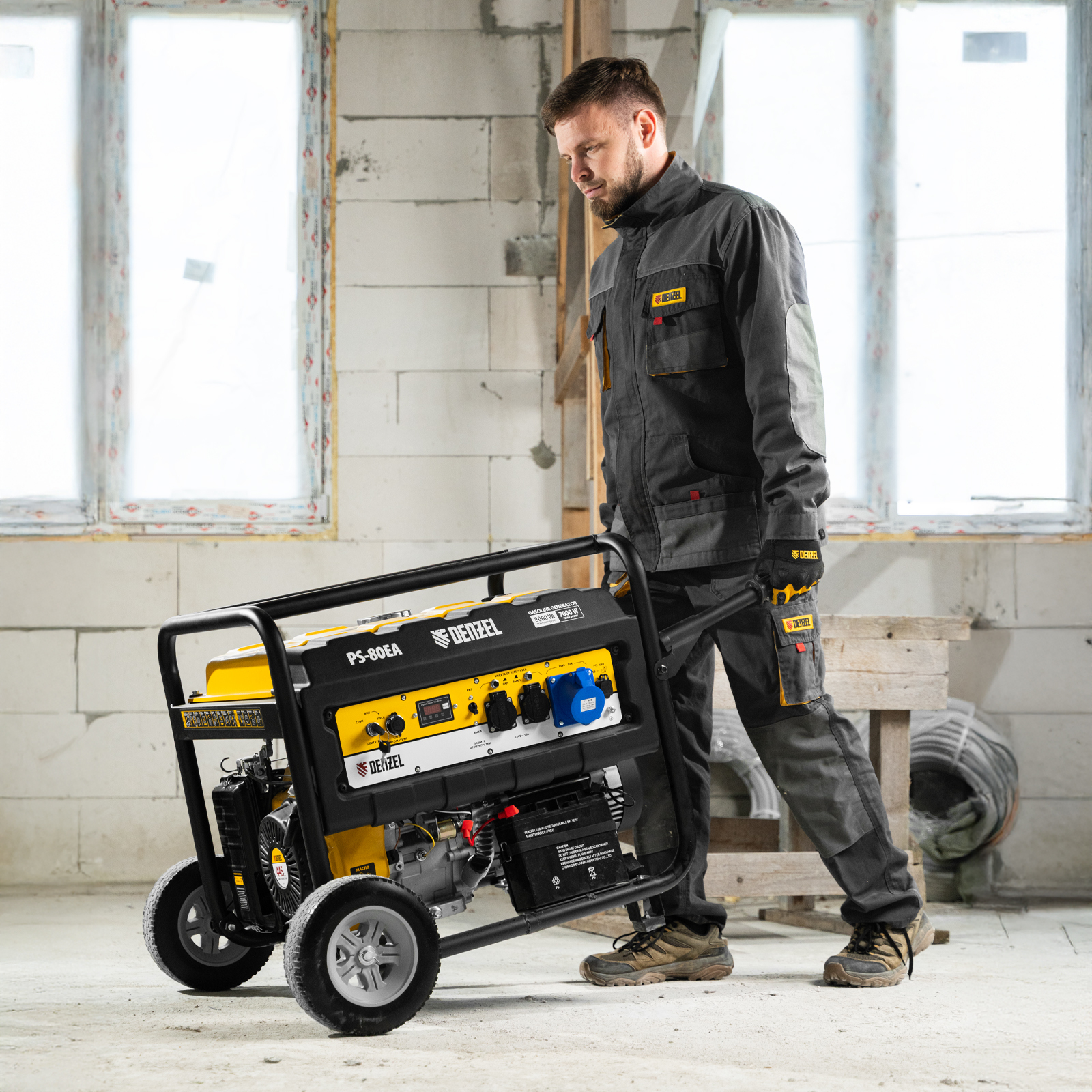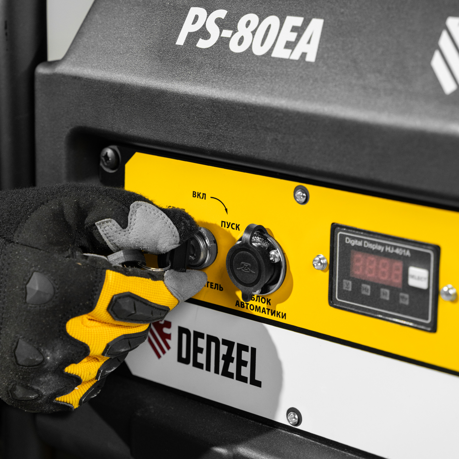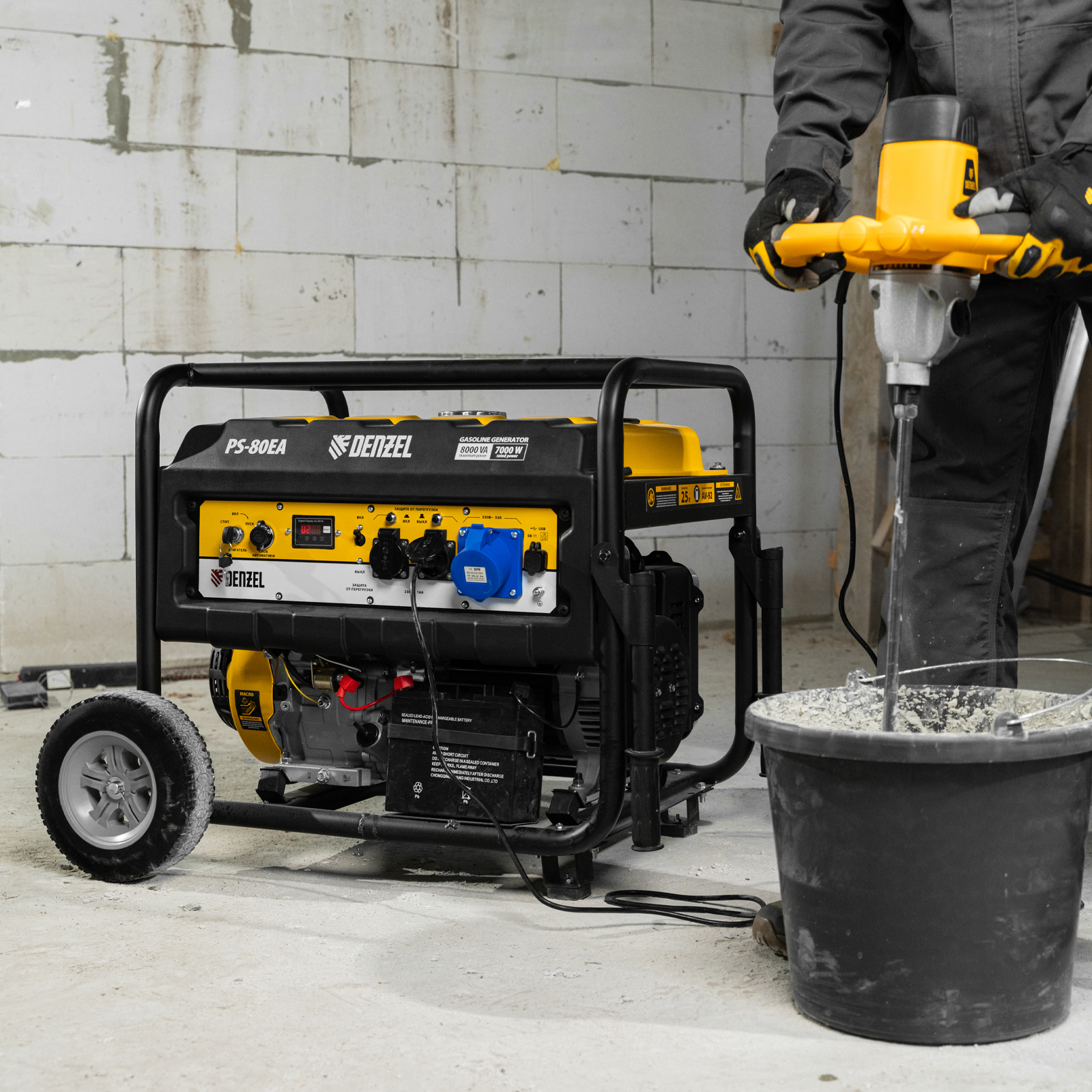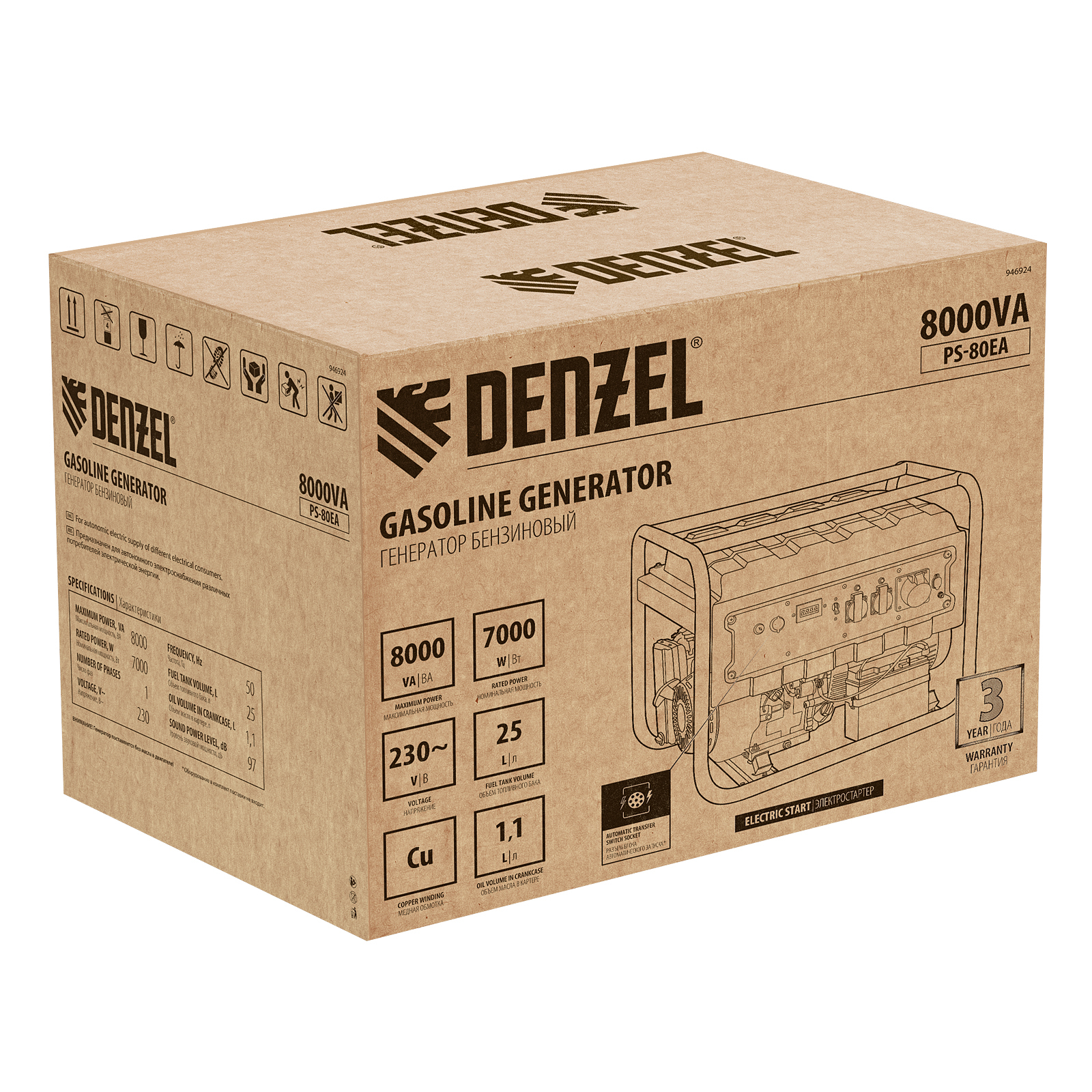 Бензиновый генератор Denzel PS 80 EA 946924 с коннектором автоматики и электростартером имеет бак объемом 25 л, поддерживает напряжение в сети 230 В и обеспечивает электропитанием потребителей суммарной мощностью до 8,0 кВт. Подходит для подключения мощных электроинструментов и бытовых приборов, незаменим в условиях отсутствия электричества. Выход постоянного тока USB 5 В позволяет использовать генератор для зарядки смартфона, планшета и других мобильных устройств.
