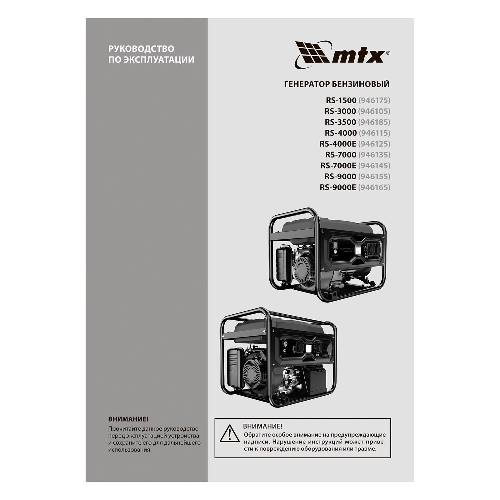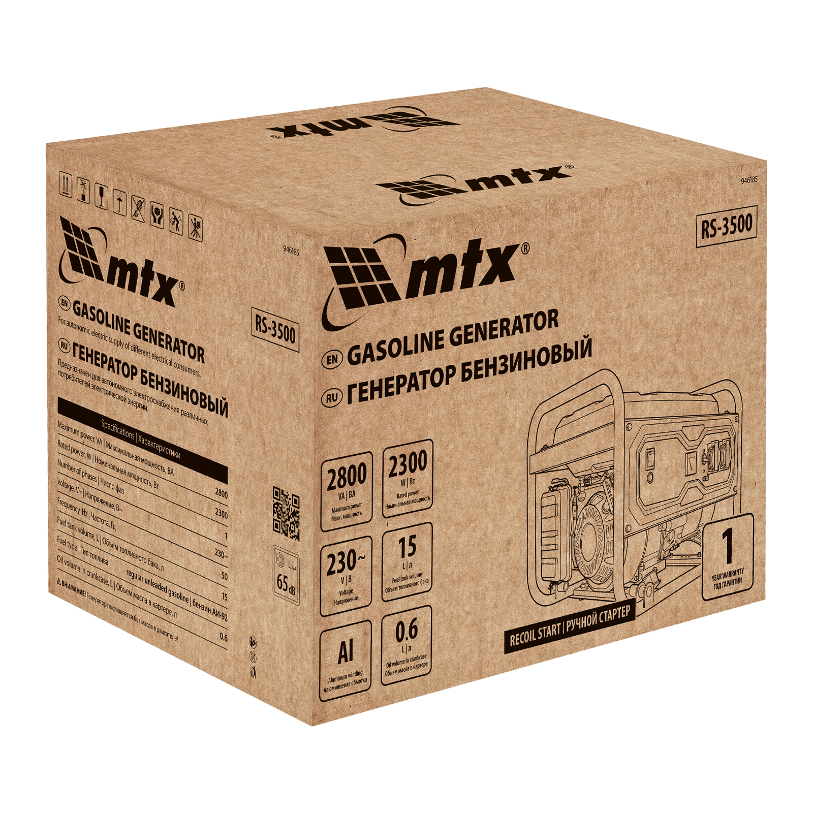 Генератор бензиновый RS-3500, 2,8 кВт, 230В, ручной стартер MTX