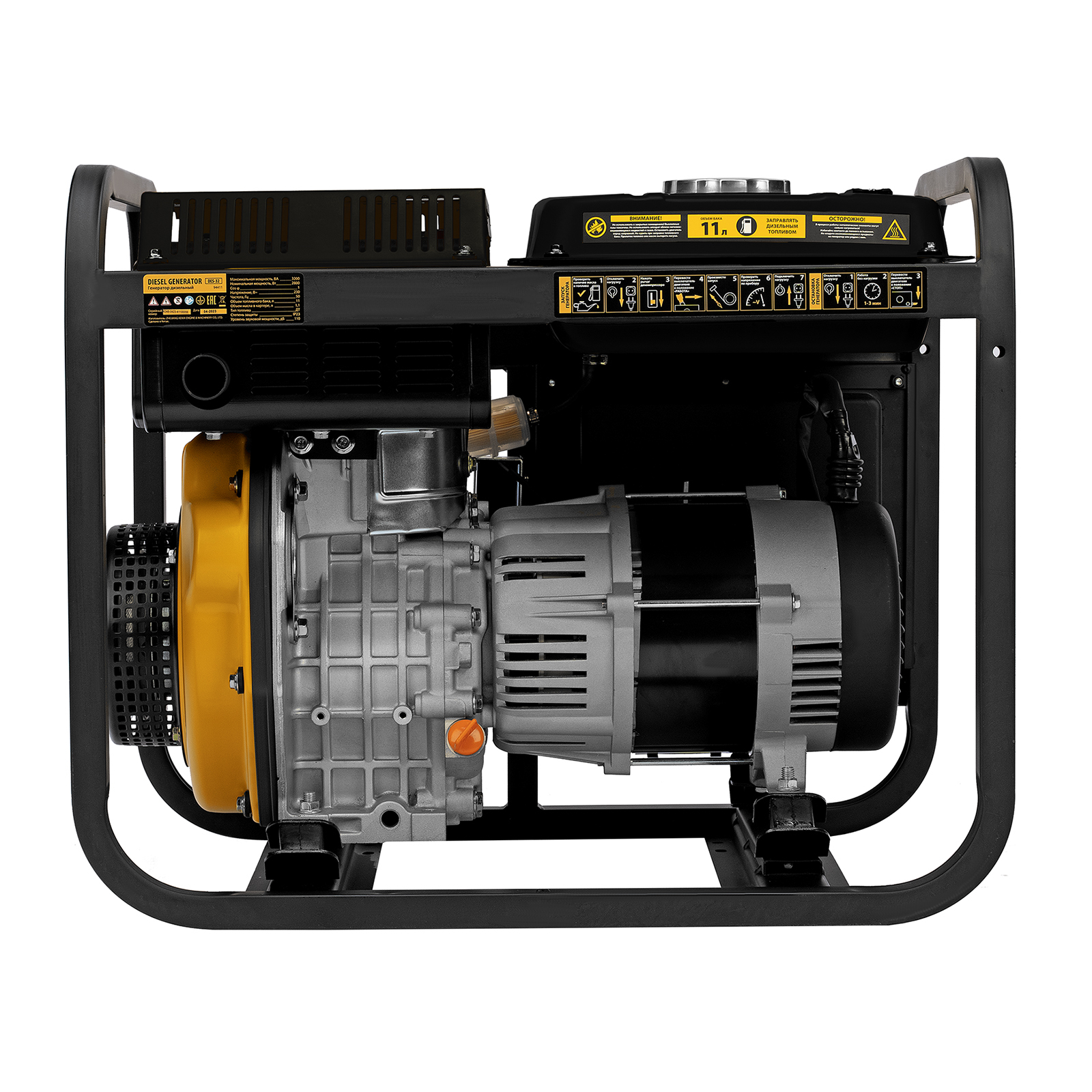 Генератор дизельный DES-32, 3,2 кВт, 230 В, 11 л, ручной стартер Denzel
