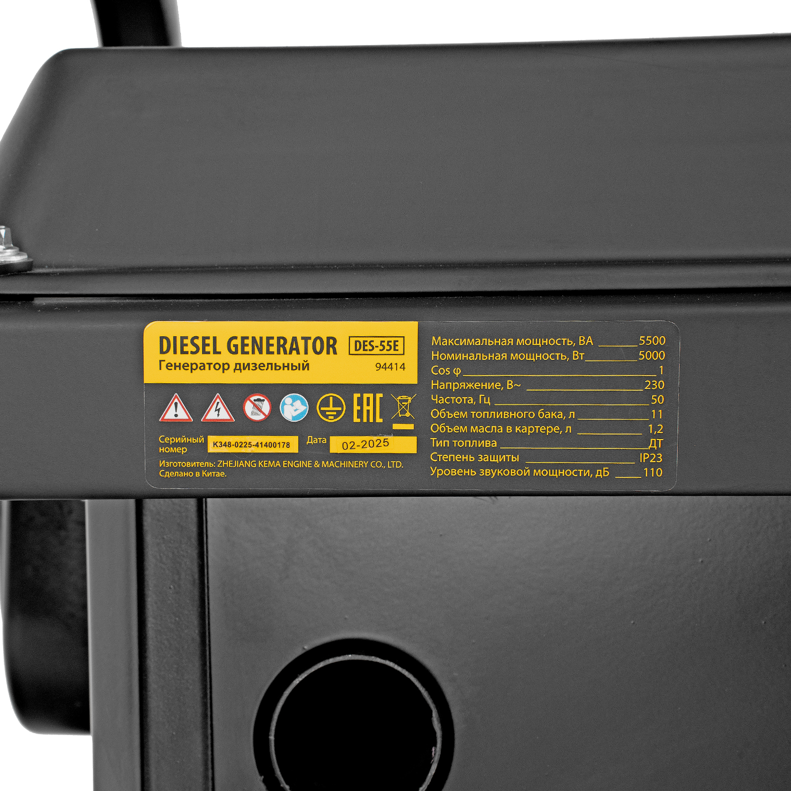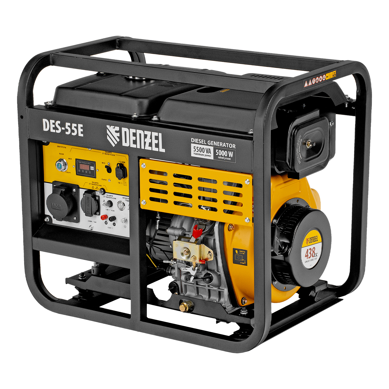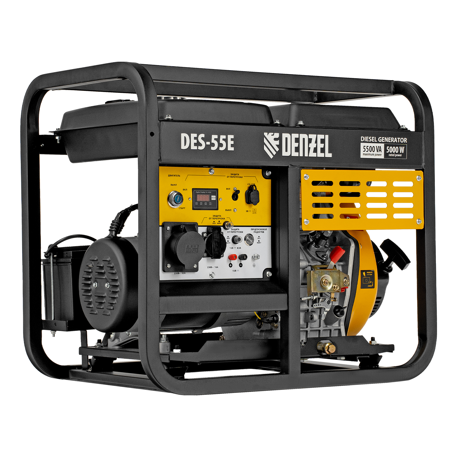 Генератор дизельный DES-55E, 5,5 кВт, 230 В, 11 л, электростартер Denzel