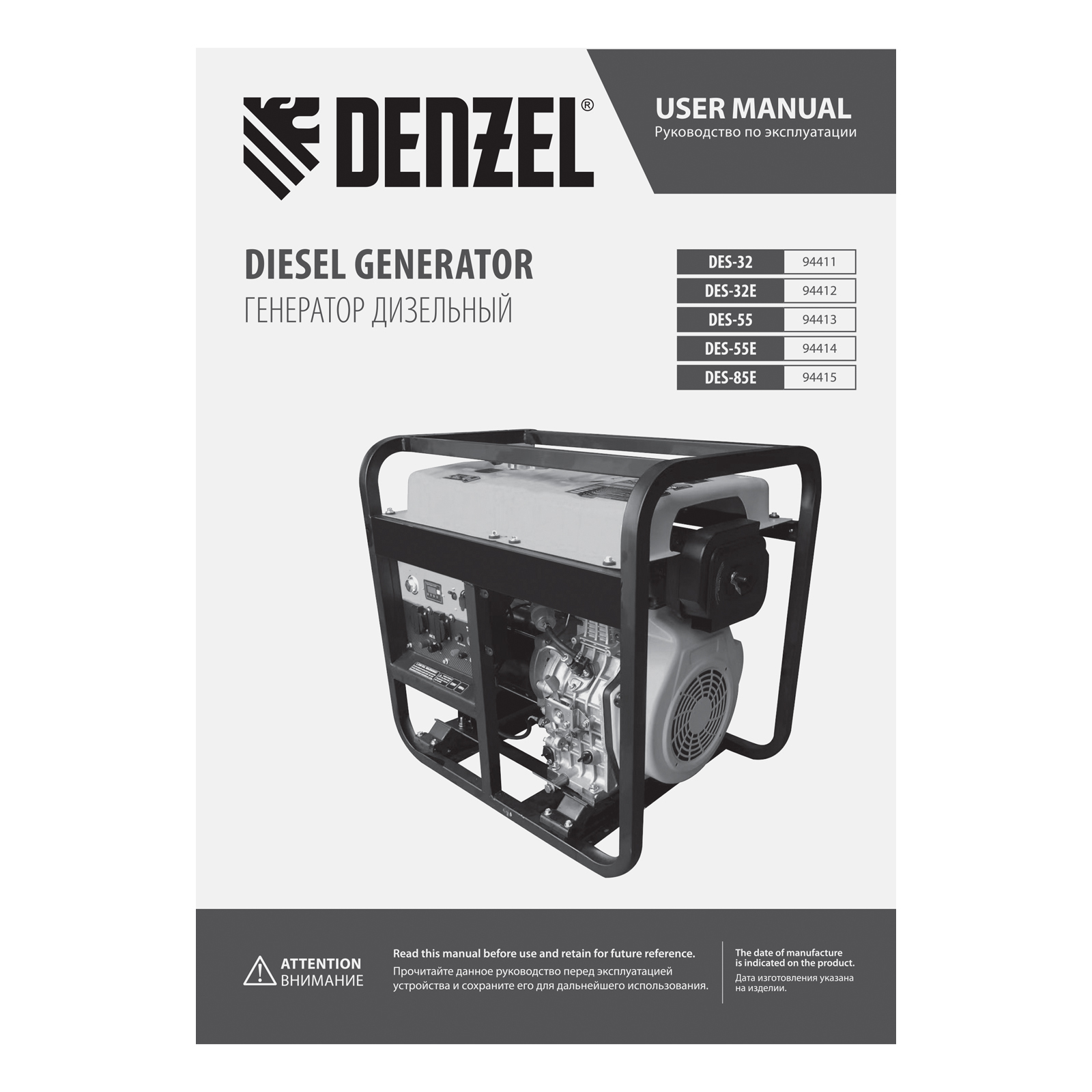 Генератор дизельный DES-85E, 8,5 кВт, 230 В, 16 л, электростартер Denzel