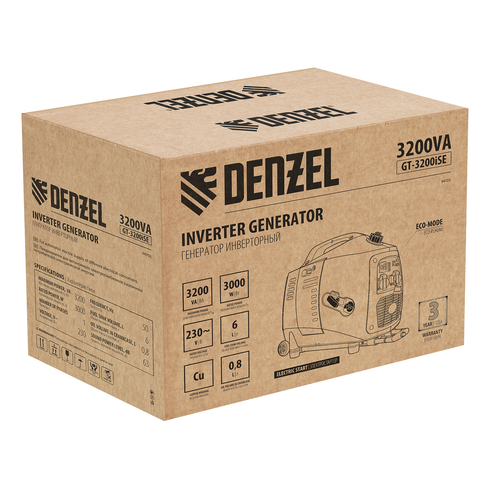 Генератор инверторный GT-3200iSE, 3.2 кВт, 230 В, бак 6 л, закрытый корпус, электростартер Denzel