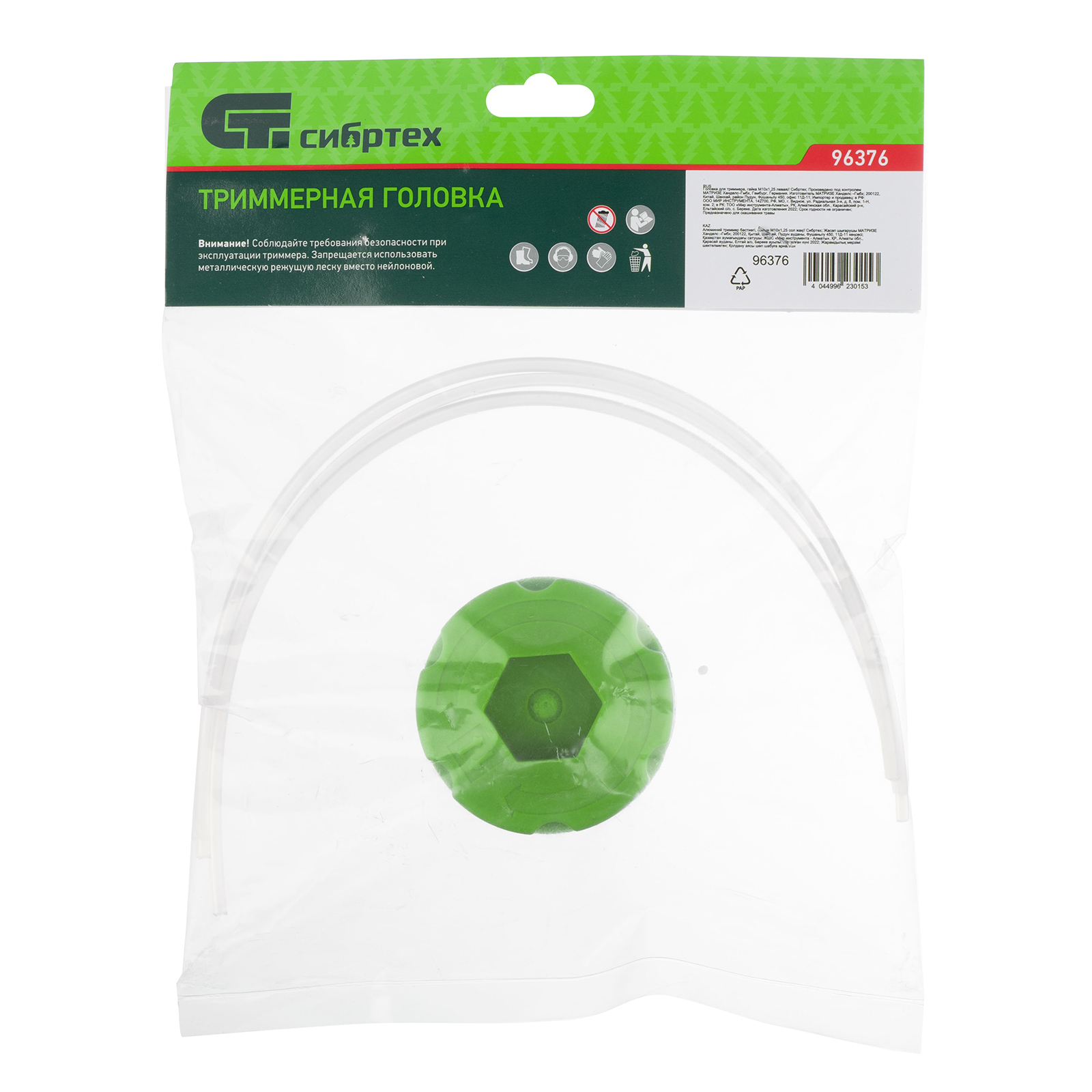<p>Головка для триммера Сибртех 96376 крепится при помощи гайки М10 х 1,25 с левой резьбой и предназначена для скашивания травы. Заправляется леской диаметром до 3 мм, что позволяет не только ухаживать за газоном, но и избавляться от сорняков на территории большой площади. Триммерная головка пригодится владельцам дачных участков и сотрудникам коммунальных служб.</p><h2>Преимущества</h2><ul><li>Компактность и малый вес — головка для триммера не утяжеляет конструкцию инструмента, что способствует уменьшению нагрузки на двигатель и снижению уровня вибраций.</li><li>Высокая производительность — 6 хвостов лески позволяют сократить время обработки участка.</li><li>Эффективная работа — триммерная головка оптимальна для скашивания травы на участках со сложным рельефом.</li><li>Простая заправка корда — замена лески осуществляется быстро без использования инструмента.</li></ul>
