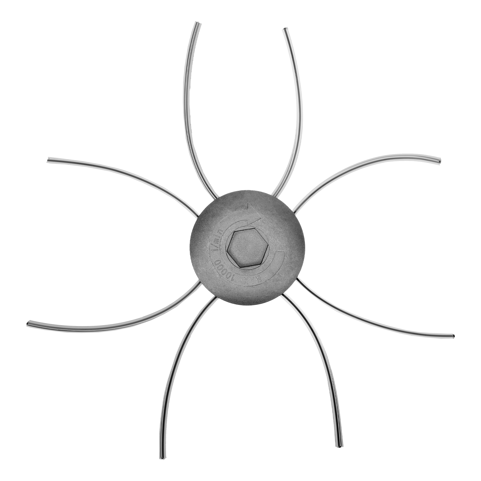 - Универсальность — триммерная головка поставляется с дополнительным крепежом: шайбами M8 и M10.