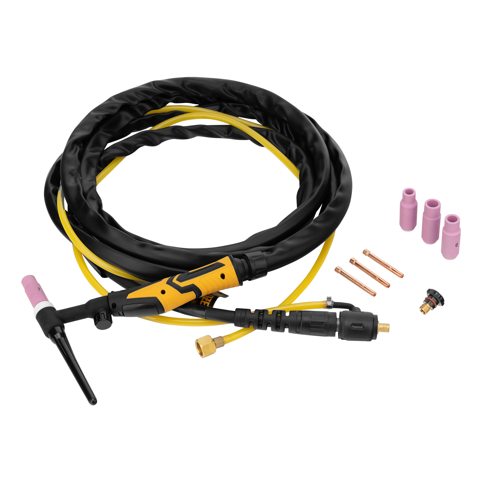 - Широкие возможности использования — благодаря газовому вентилю на рукоятке горелка совместима с большинством сварочных аппаратов, работающих в режиме Lift TIG.