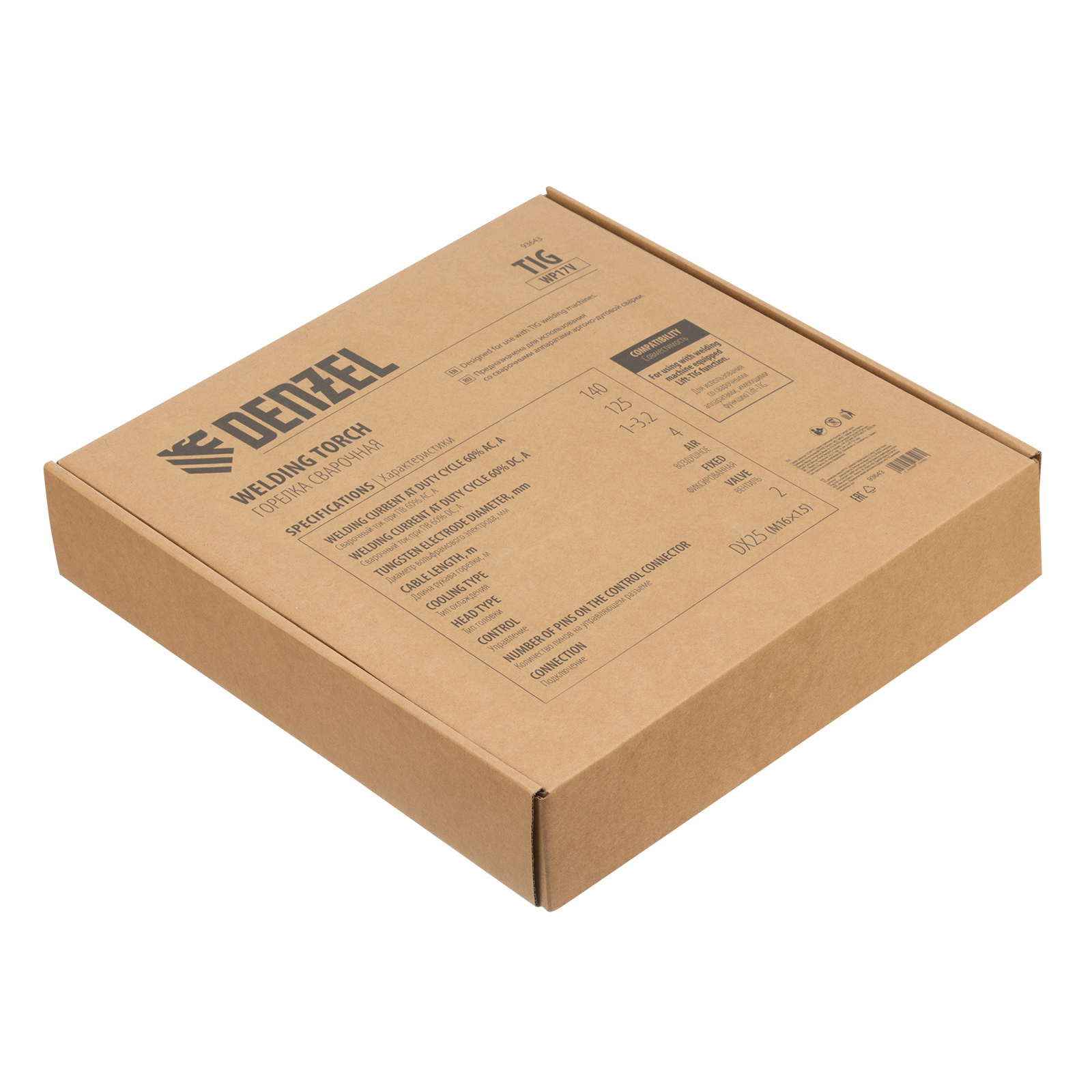 Сварочная горелка Denzel TIG WP17V 93643 с рукавом длиной 4 м предусматривает прямое подключение к баллону и используется для аргонодуговой сварки неплавящимся электродом диаметром 1-3,2 мм. Максимальная величина постоянного сварочного тока составляет 140 A, переменного — 125 A. Горелка подходит для работы со сталями и цветными металлами, в т.ч. алюминием.