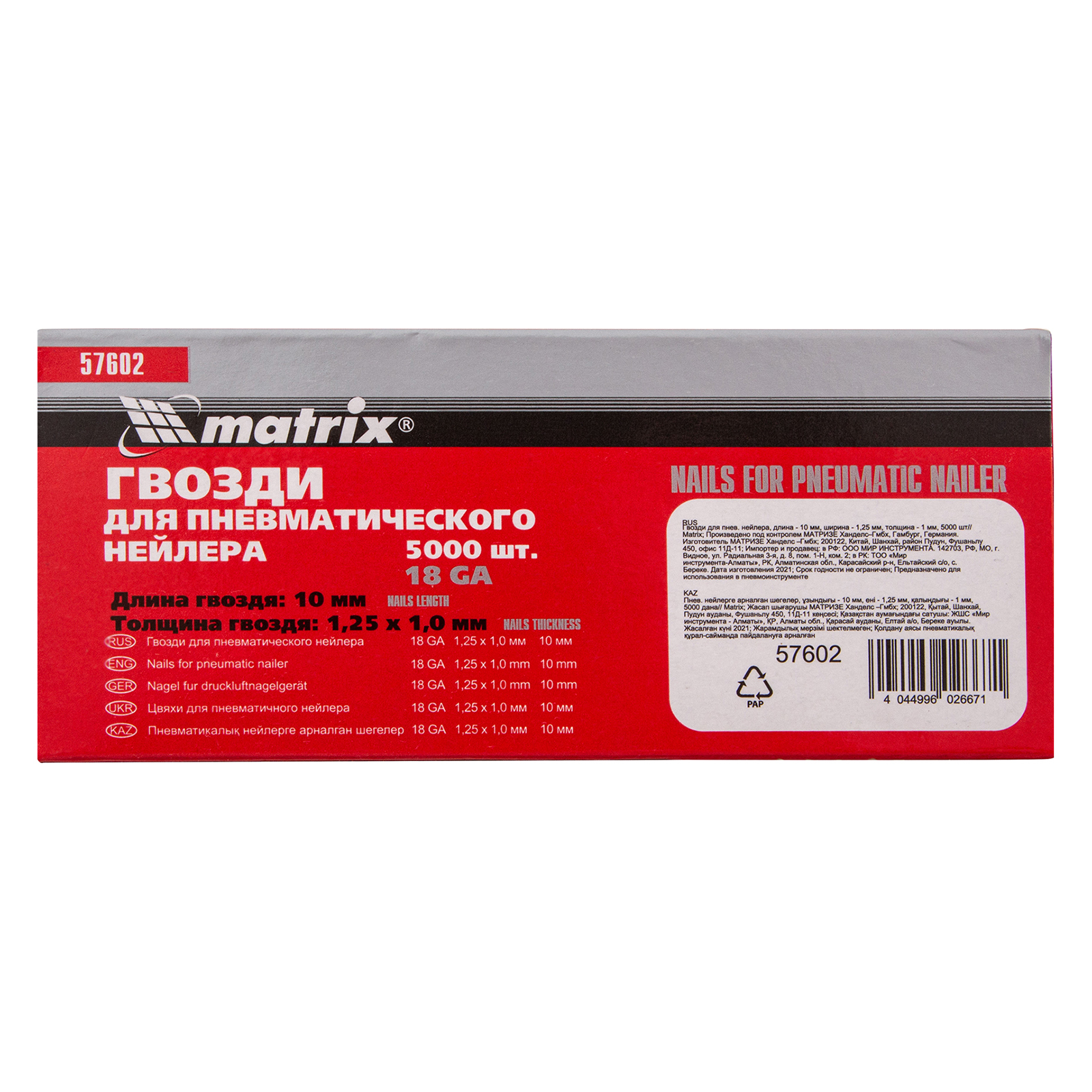 Гвозди для пневматического нейлера, длина 10 мм, ширина 1.25 мм, толщина 1 мм, 5000 шт Matrix
