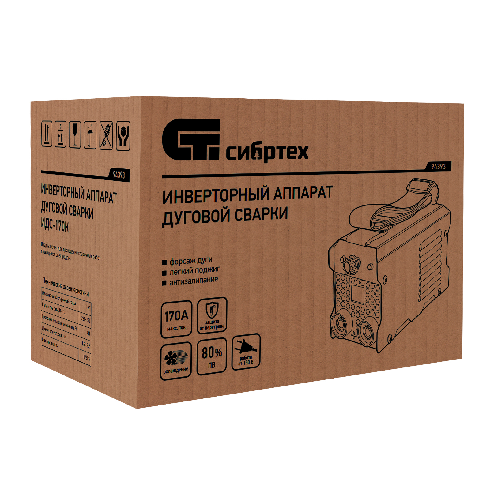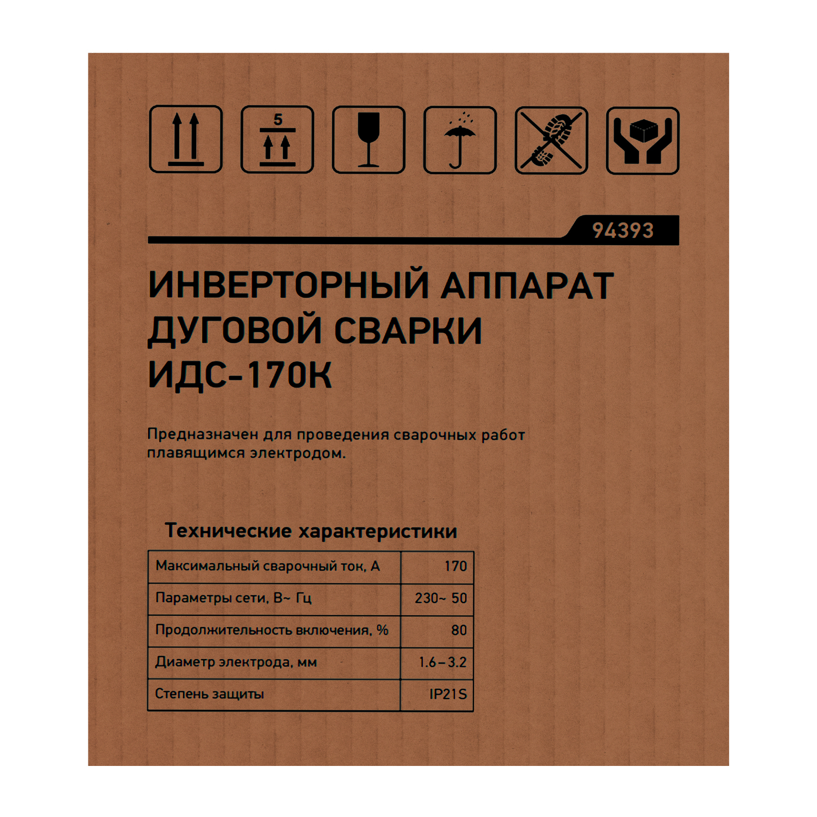 Инверторный аппарат дуговой сварки ИДС-170K, 170 А, ПВ 80%, диаметр электрода 1,6-3,2 мм Сибртех