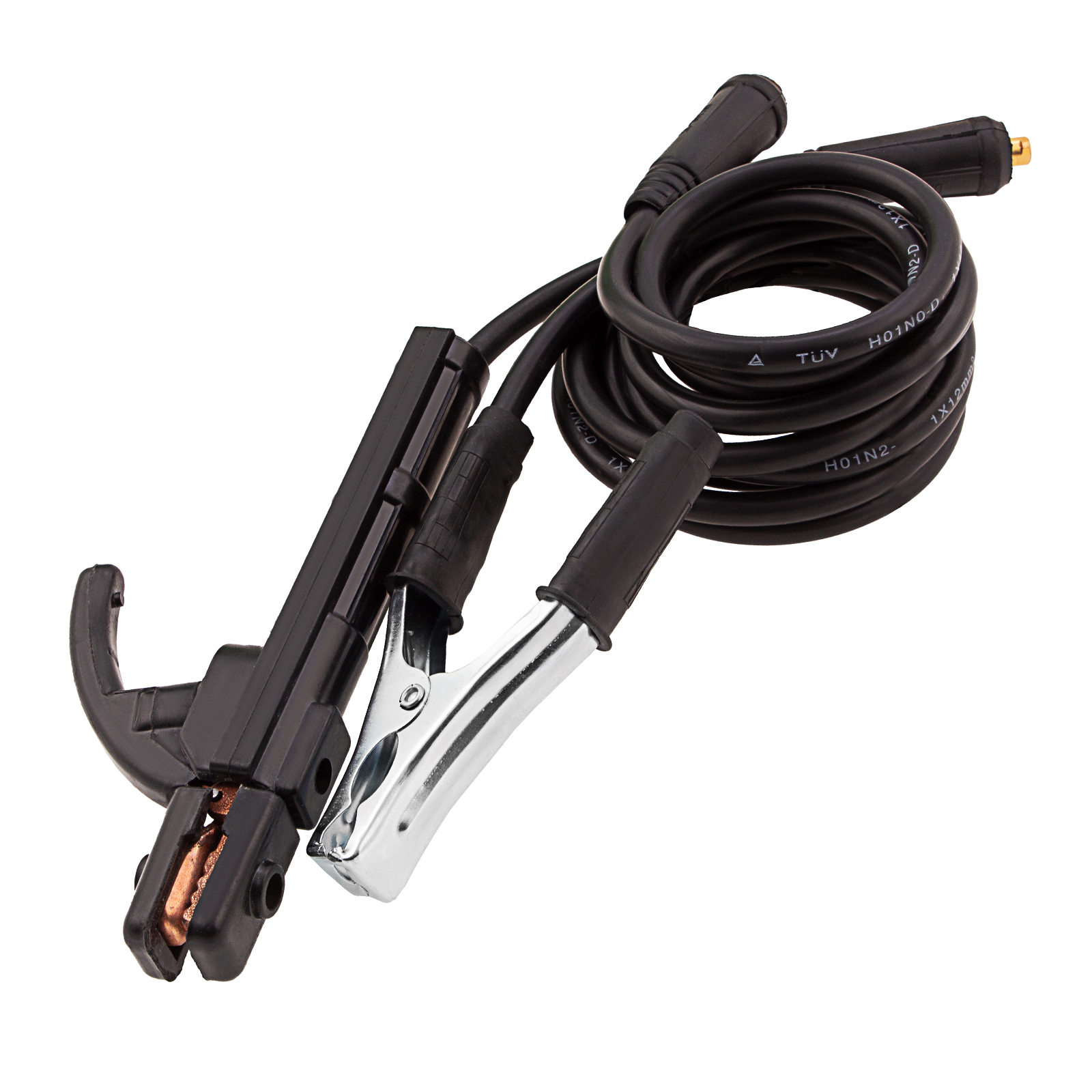 - Полный комплект поставки — кабель с электрододержателем и кабель с зажимом «земля» не придется докупать отдельно.