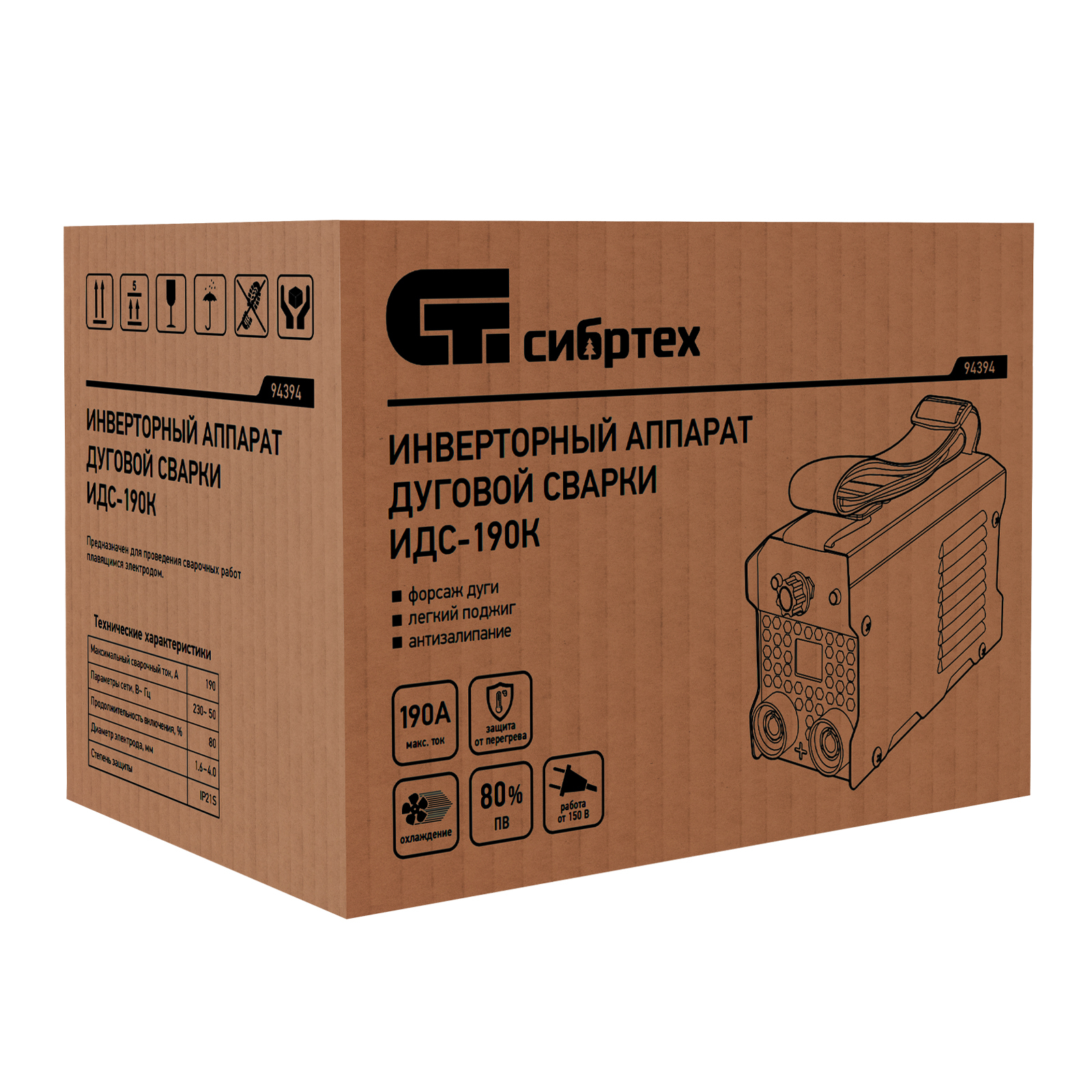 Инверторный аппарат дуговой сварки ИДС-190K, 190 А, ПВ 80%, диаметр электрода 1,6-4 мм Сибртех