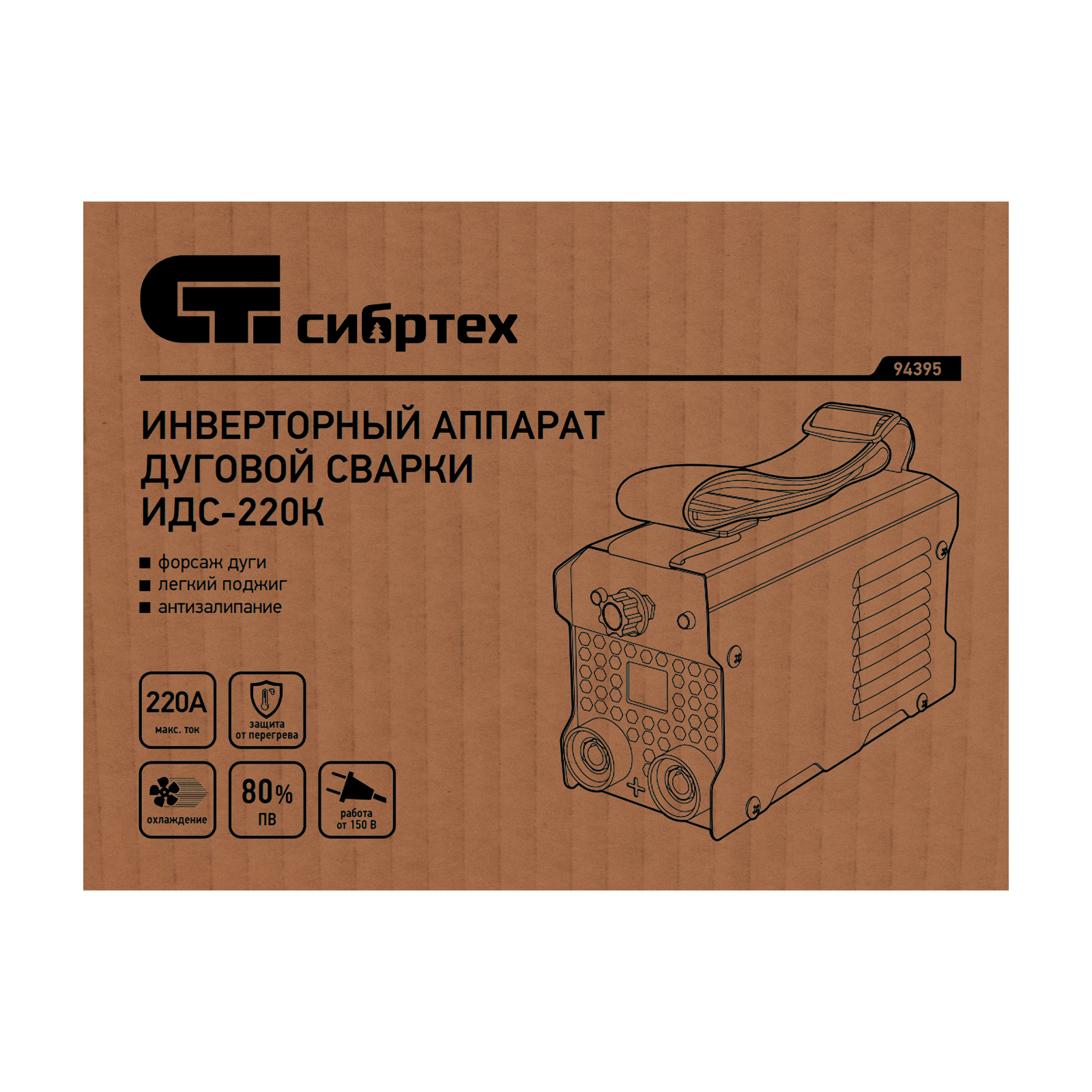 Инверторный аппарат дуговой сварки ИДС-220K, 220 А, ПВ 80%, диаметр электрода 1,6-5 мм Сибртех