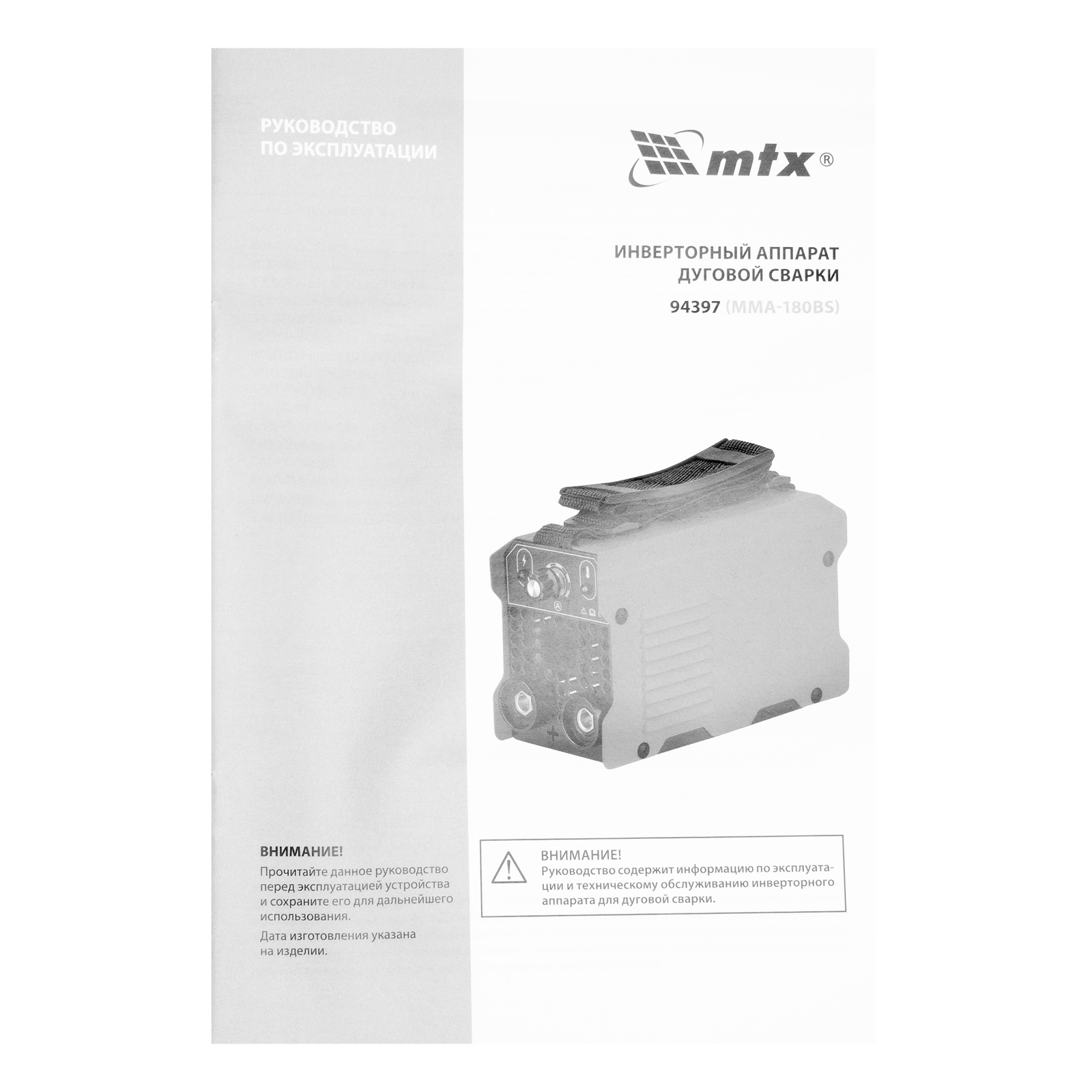 Инверторный аппарат дуговой сварки MMA-180BS, 180 А, ПВ 60% MTX
