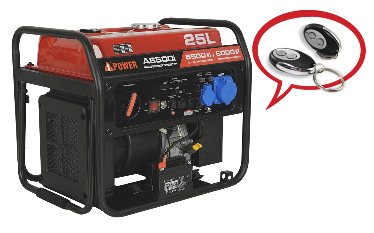 Инверторный генератор, Инструкция (1 шт) , Ключ свечной (1 шт) , Отвертка простая (1 шт) , Вилка электрическая (2 шт), Кабель зарядный (1 шт) , Колеса ( 1 компл.), Пульт управления запуском (1 шт)