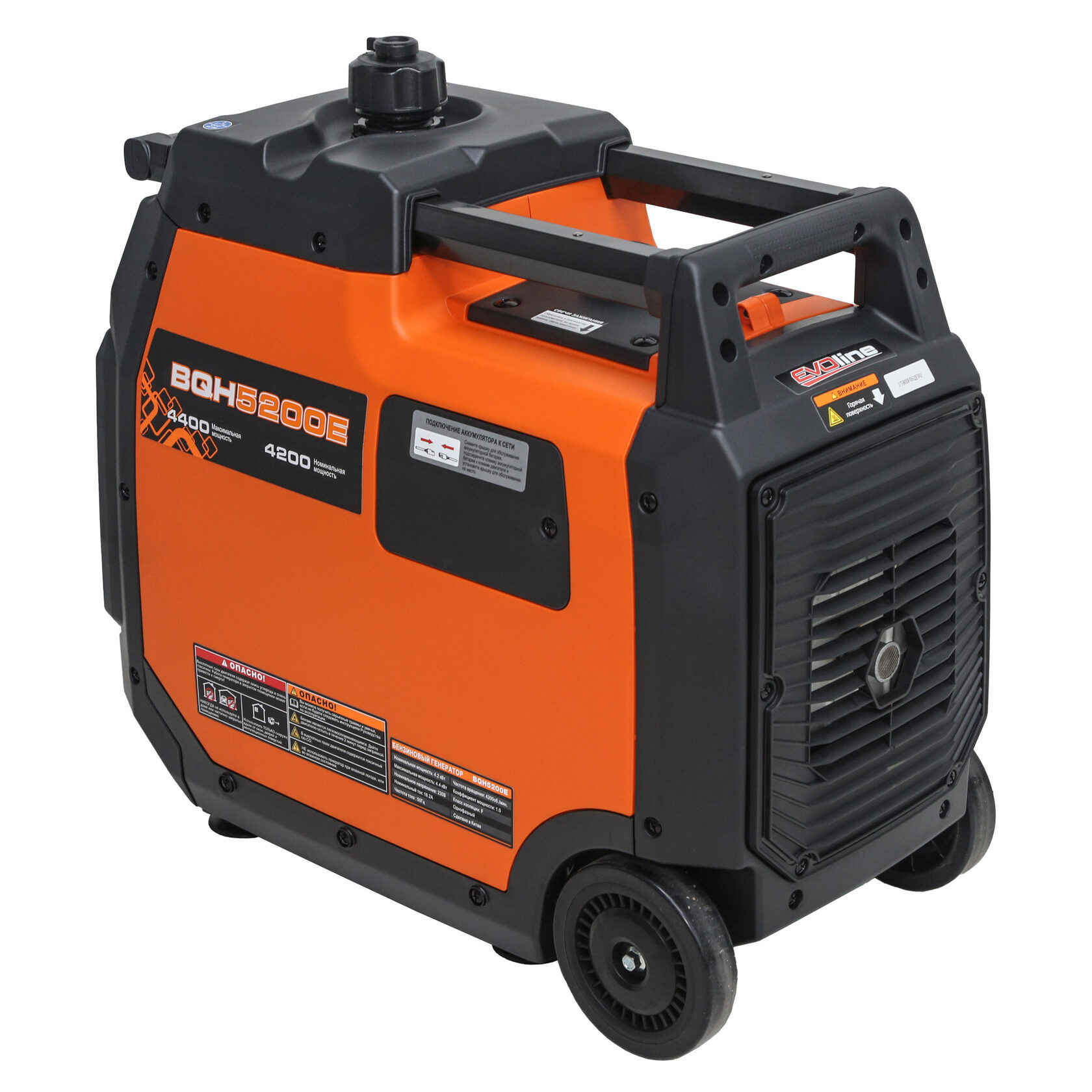 Инверторный генератор EVOline BQH 5200E – компактный и надежный источник энергии для профессионального и бытового использования. Оснащен экономичным 4-тактным двигателем объемом Zongshen 224 см³ и имеет мощностью 4,2 кВA (макс. 4,4 кВA). Чистый синусоидальный сигнал обеспечивает безопасную работу чувствительной электроники. Автоматическая регулировка оборотов (AUTO THROTTLE) снижает расход топлива и уровень шума. Время работы на одной заправке – до 10 часов. Защита от перегрузки, низкого уровня масла и короткого замыкания. Вес – 35 кг, удобная транспортировка за счет колес и ручки. Идеален для стройплощадок, кемпинга и резервного электроснабжения.