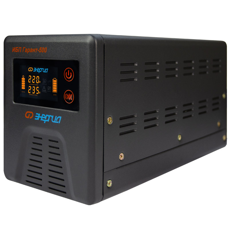 Инверторы «Энергия» серии ИБП Гарант подключаются к внешнему аккумулятору. Используется 12 и 24 вольтовые аккумуляторной батареи, в зависимости от модели ИБП. Использование внешнего аккумулятора дает ощутимые преимущества по сравнению со встроенным: