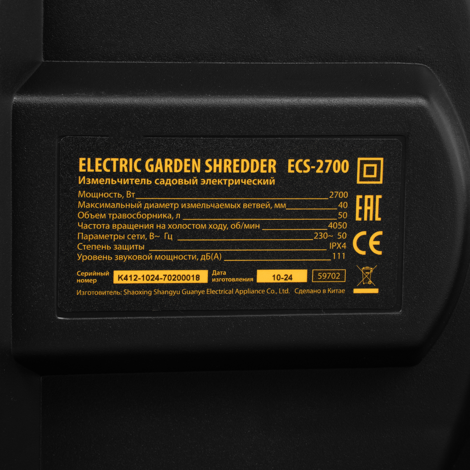 Измельчитель садовый электрический ECS-2700, 2700 Вт, 40 мм Denzel