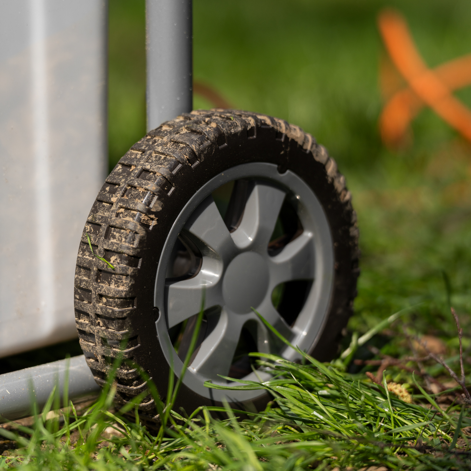 - Маневренность — для удобного перемещения по участку измельчитель оснащен колесами и ручкой.