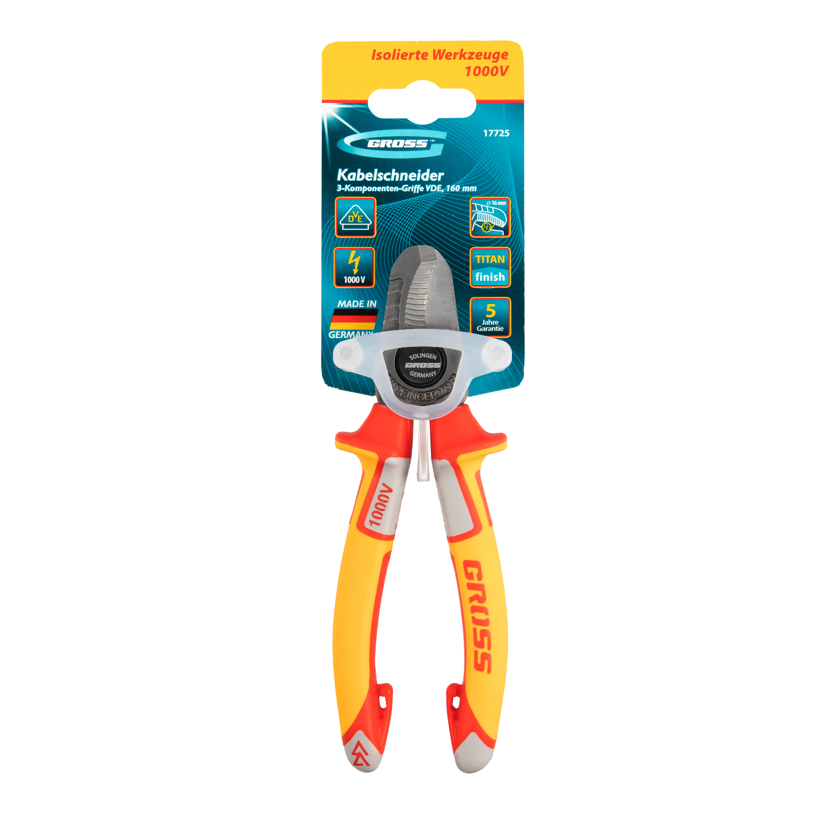 Кабелерез, диэлектрические рукоятки до 1000 В, трехкомпонентные рукоятки, 160 мм Gross