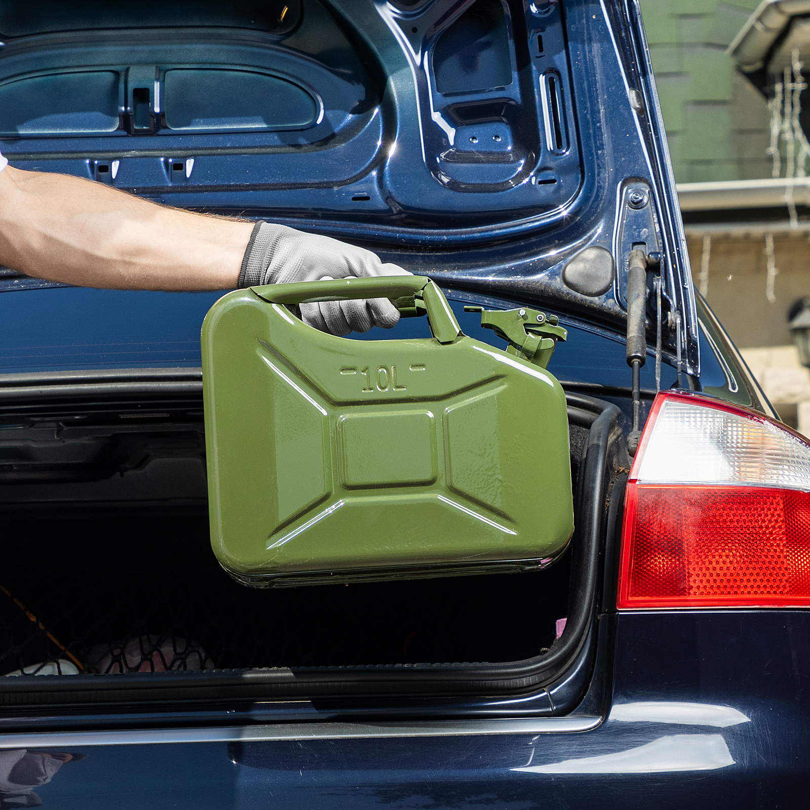 Металлическая канистра STELS 53144 объемом 10 литров предназначена для хранения и транспортировки бензина и других горюче-смазочных материалов (ГСМ). Ее можно разместить в багажнике автомобиля или поставить в гараже. Канистра пригодится для заправки авто и садовой бензотехники, разрешен залив топлива на АЗС.