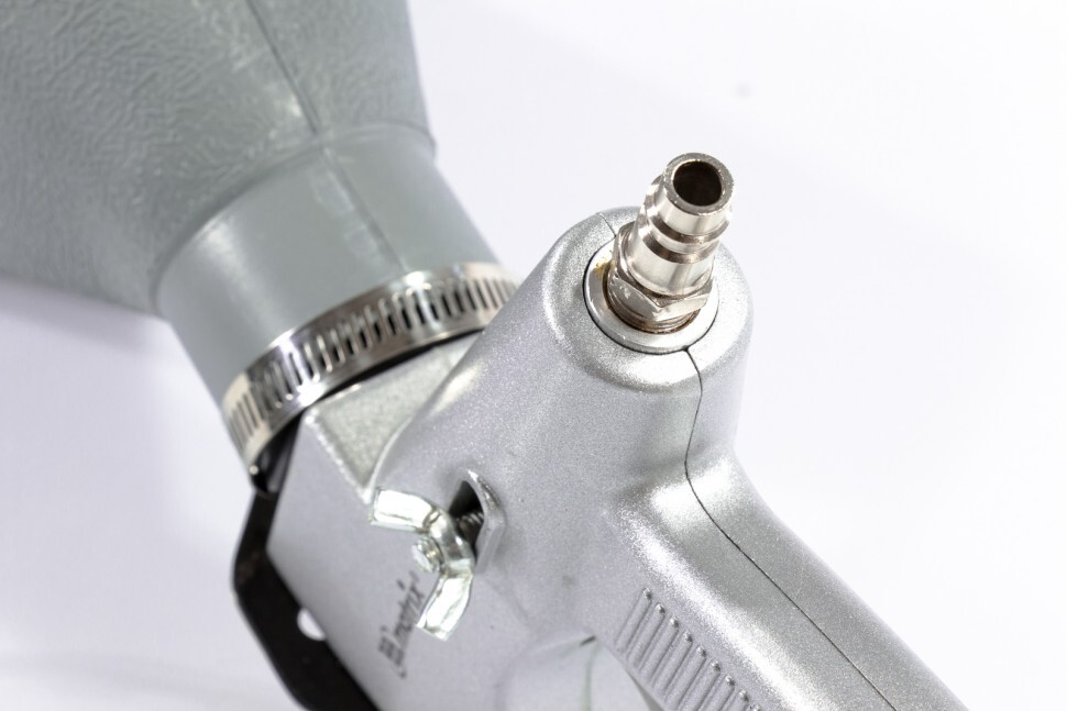 - Высокий ресурс — пистолет выполнен из алюминия, а насадка и дюза — из нержавеющей стали.