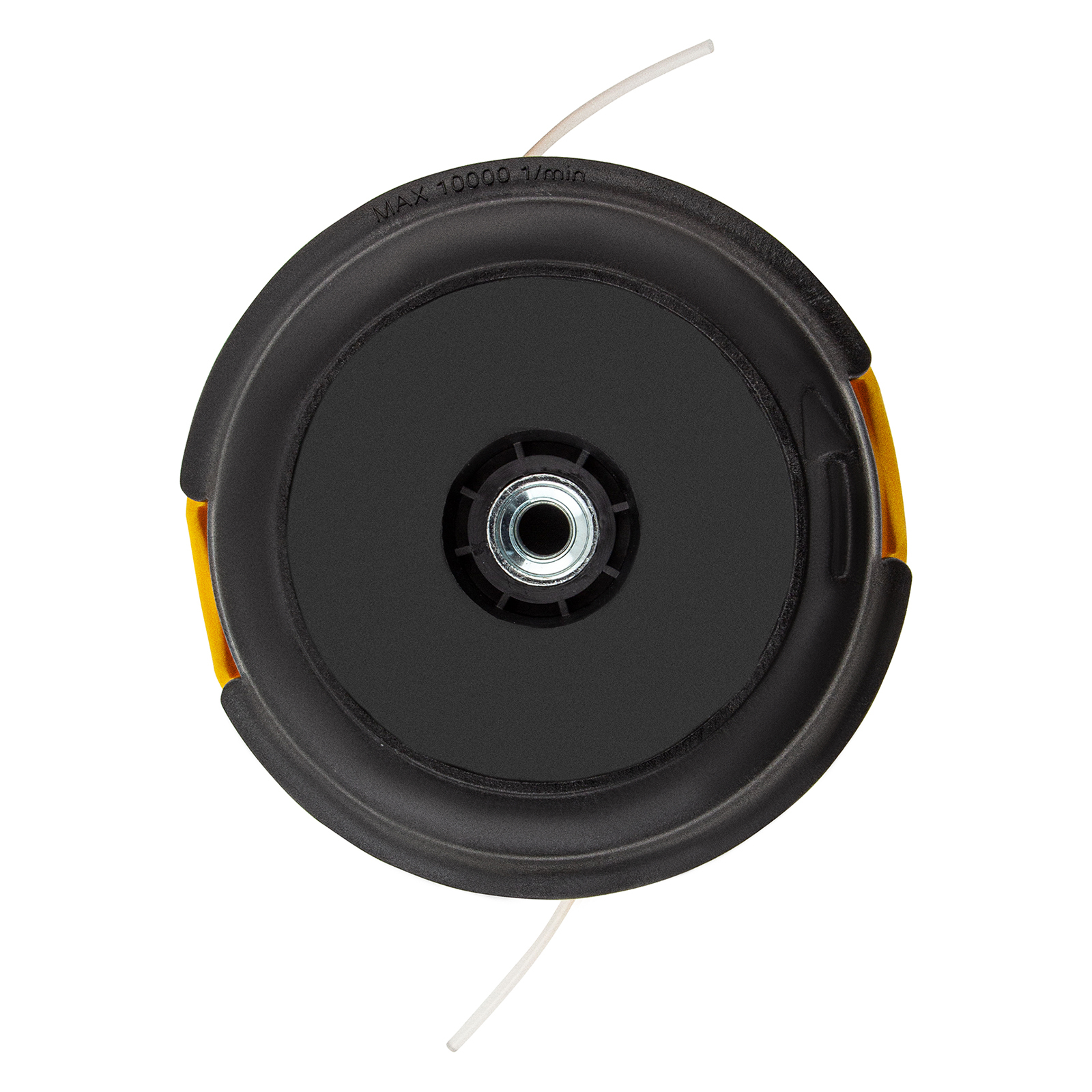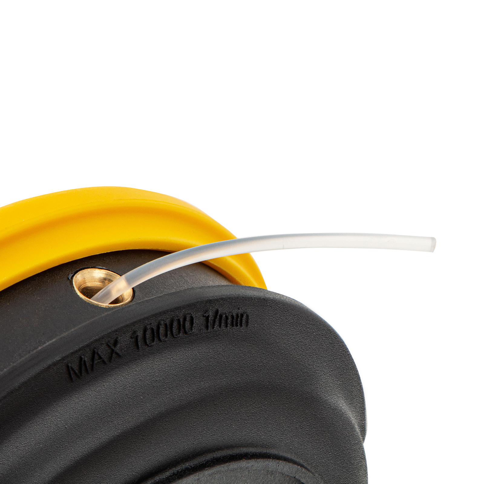 - Высокая эффективность — катушка заправляется леской толщиной до 3 мм, поэтому легко справится не только с газонной, но и с многолетней высокой травой.