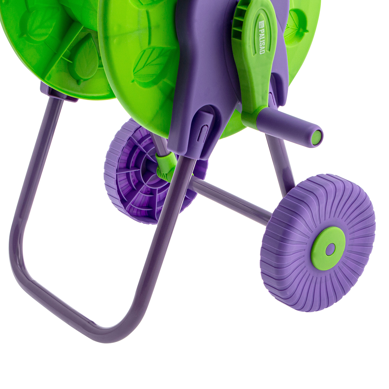 Катушка Palisad 67403 на колесах упрощает работу с поливочным шлангом длиной до 30 м. Позволяет регулировать его длину во время работ на участке, а также обеспечивает бережное хранение, предотвращая перекручивание и запутывание. Боковая рукоятка облегчает разматывание и наматывание шланга.