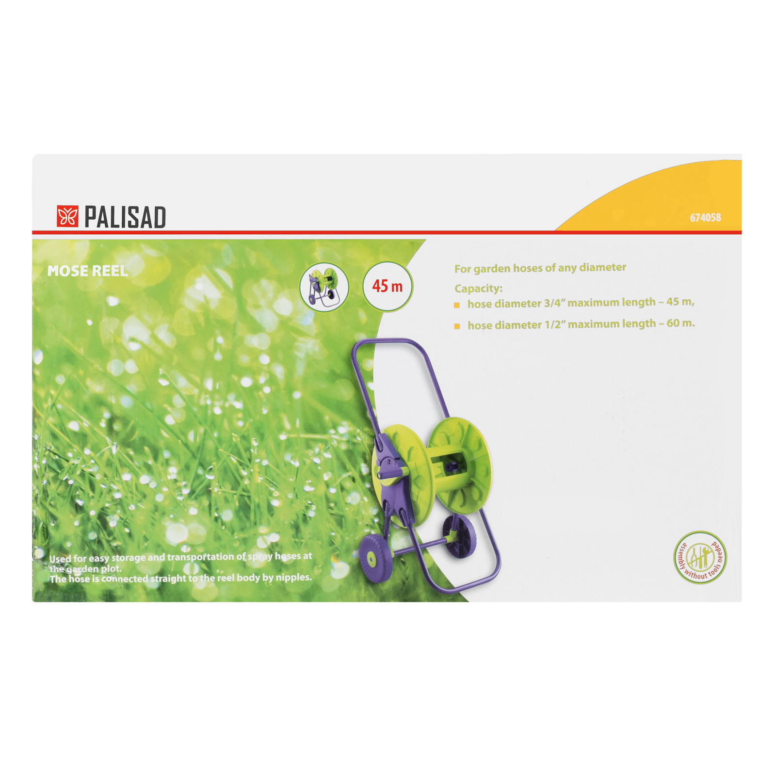 <p>Катушка Palisad на колесах упрощает работу с поливочным шлангом длиной до 45 м. Позволяет регулировать его длину во время работ на участке, а также обеспечивает бережное хранение, предотвращая перекручивание и запутывание. Боковая рукоятка облегчает разматывание и наматывание шланга.</p><h2>Преимущества</h2><ul><li>Долговечность — изделие из высококачественного ABS-пластика и алюминиевых трубок устойчиво к коррозии и воздействию климатических факторов.</li></ul><ul><li>Продуманная конструкция — благодаря специальному штуцеру на корпусе шланг не перегибается при подключении.</li></ul><ul><li>Удобное хранение и транспортировка — приспособление имеет складную ручку, а крупные колеса упрощают его перемещение по участку.</li></ul>