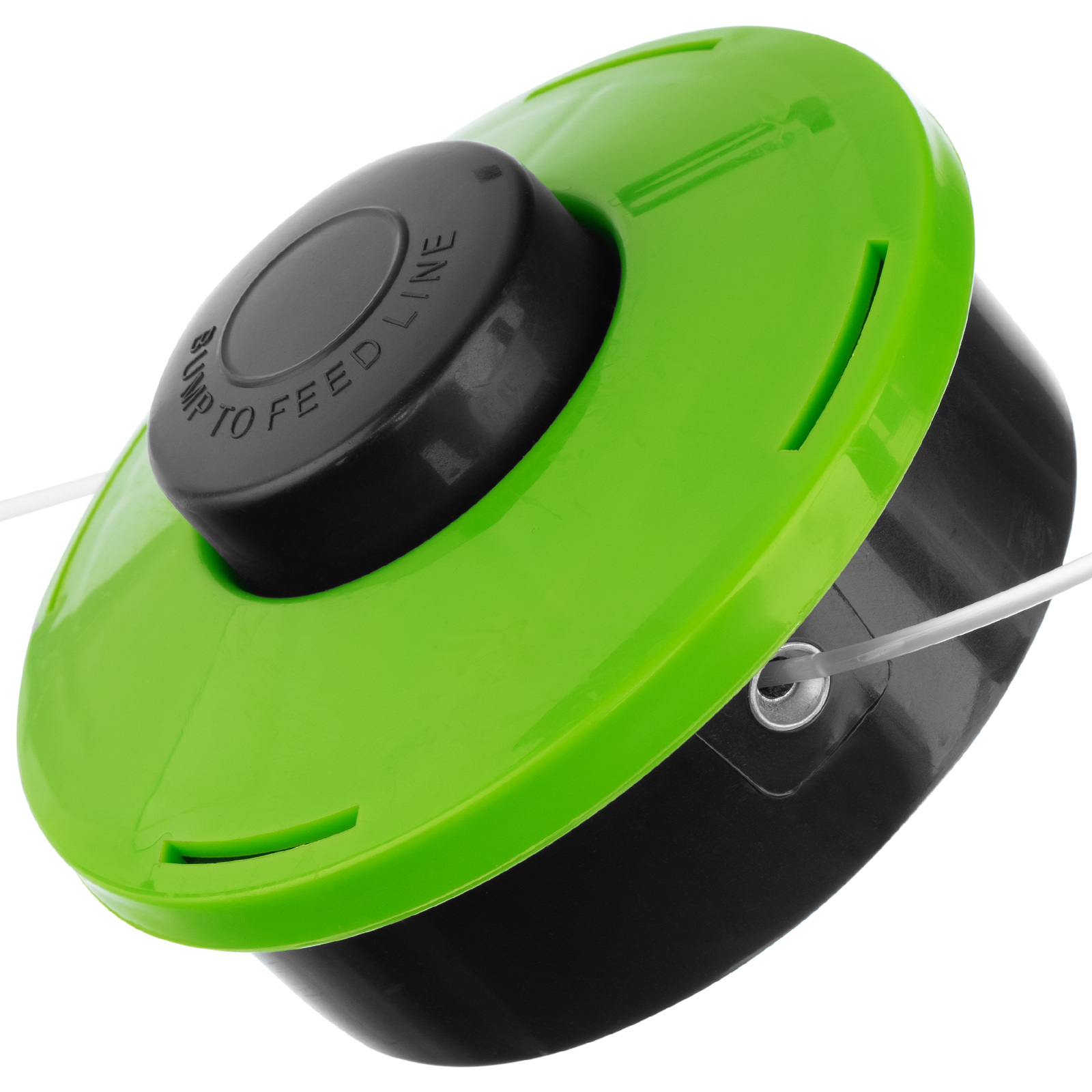 - Быстрое обновление лески (полуавтоматический тип) — для подачи корда достаточно слегка ударить катушкой о землю, не останавливая триммер.
