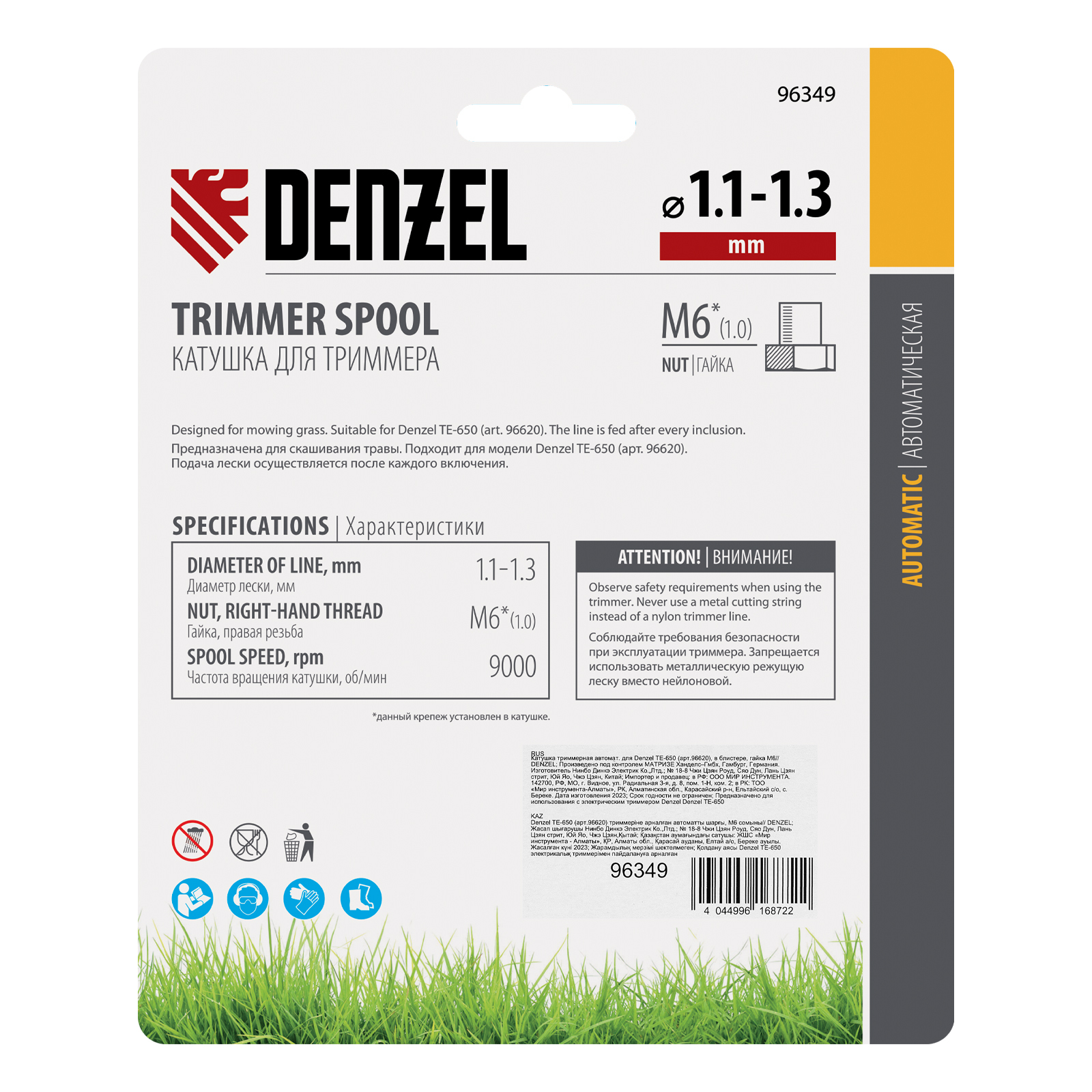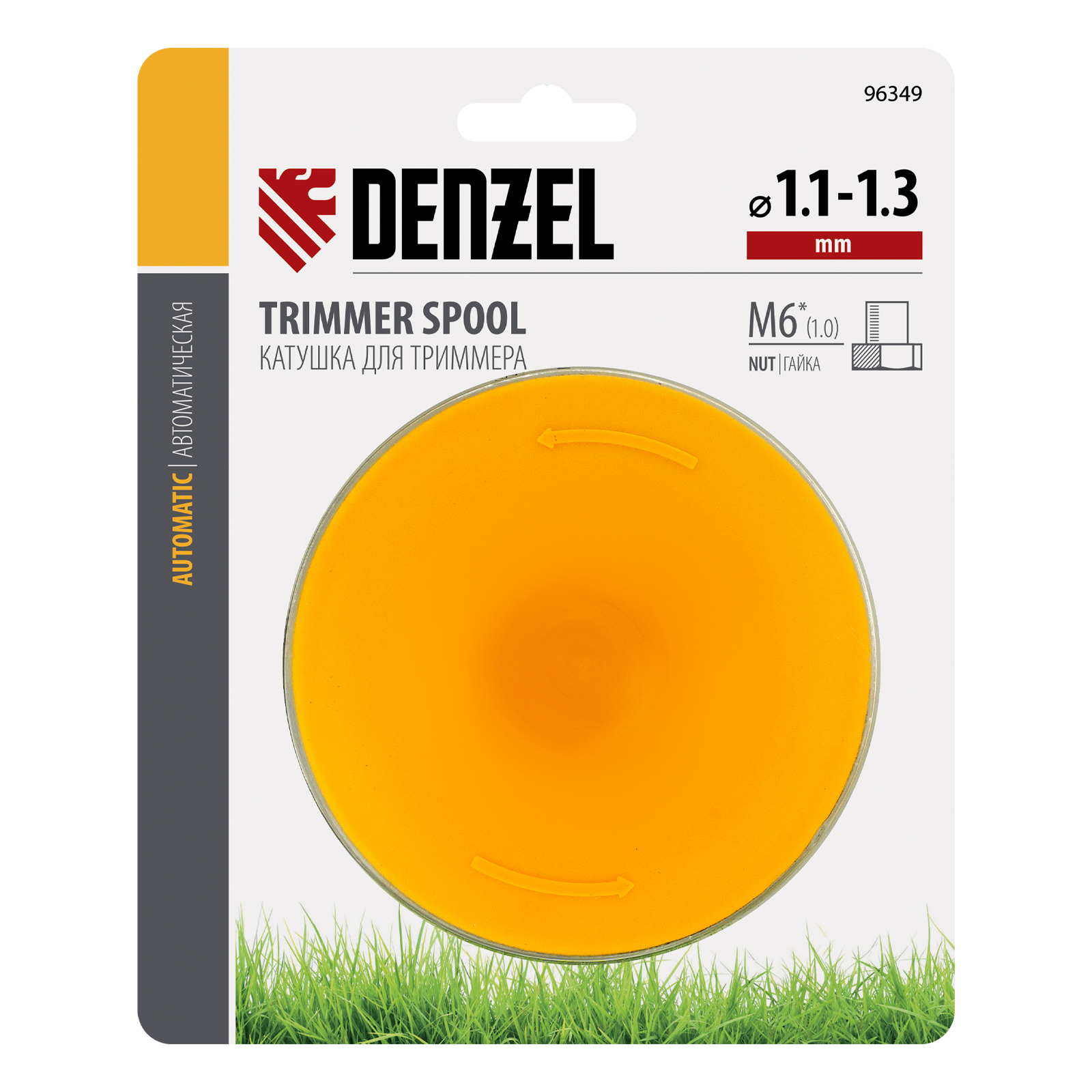 Катушка триммерная автоматическая, для Denzel TE-650 артикула 96620, в блистере, гайка M6 Denzel