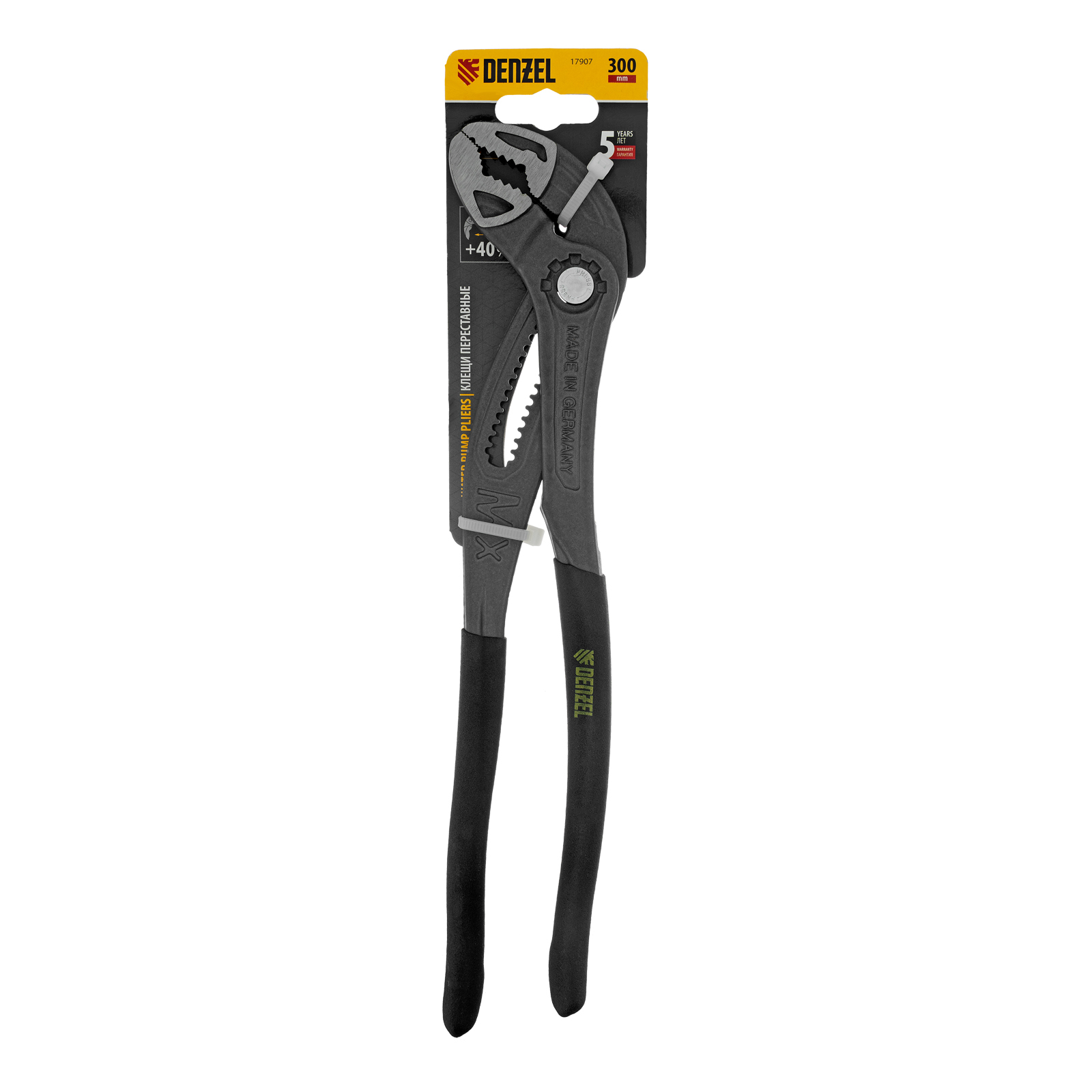 Клещи переставные, кнопочный механизм, обливные рукоятки, 300 мм Denzel
