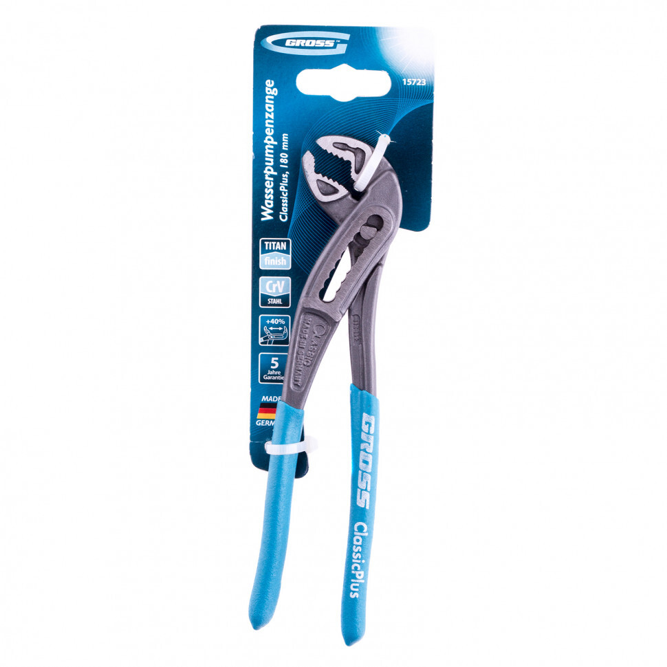 <p>Переставные клещи Gross 15723 длиной 180 мм, с обливными рукоятками, пригодятся частному и профессиональному мастеру при проведении слесарно-монтажных работ. Они используются для удержания, вращения и установки различных деталей диаметром до 40 мм: труб, фитингов, крепежа и т.д. Инструментом удобно работать в труднодоступных местах.</p><h2>Преимущества</h2><ul><li>Надежность и долговечность — клещи изготовлены из прочной хромованадиевой стали.</li><li>Захват мелких деталей — с помощью специального паза можно удерживать гвозди или проволоку.</li><li>Комфортная работа — обливные рукоятки удобно ложатся в руку.</li><li>Подтвержденное качество — производитель предоставляет 5-летнюю гарантию на заводской брак.</li></ul>