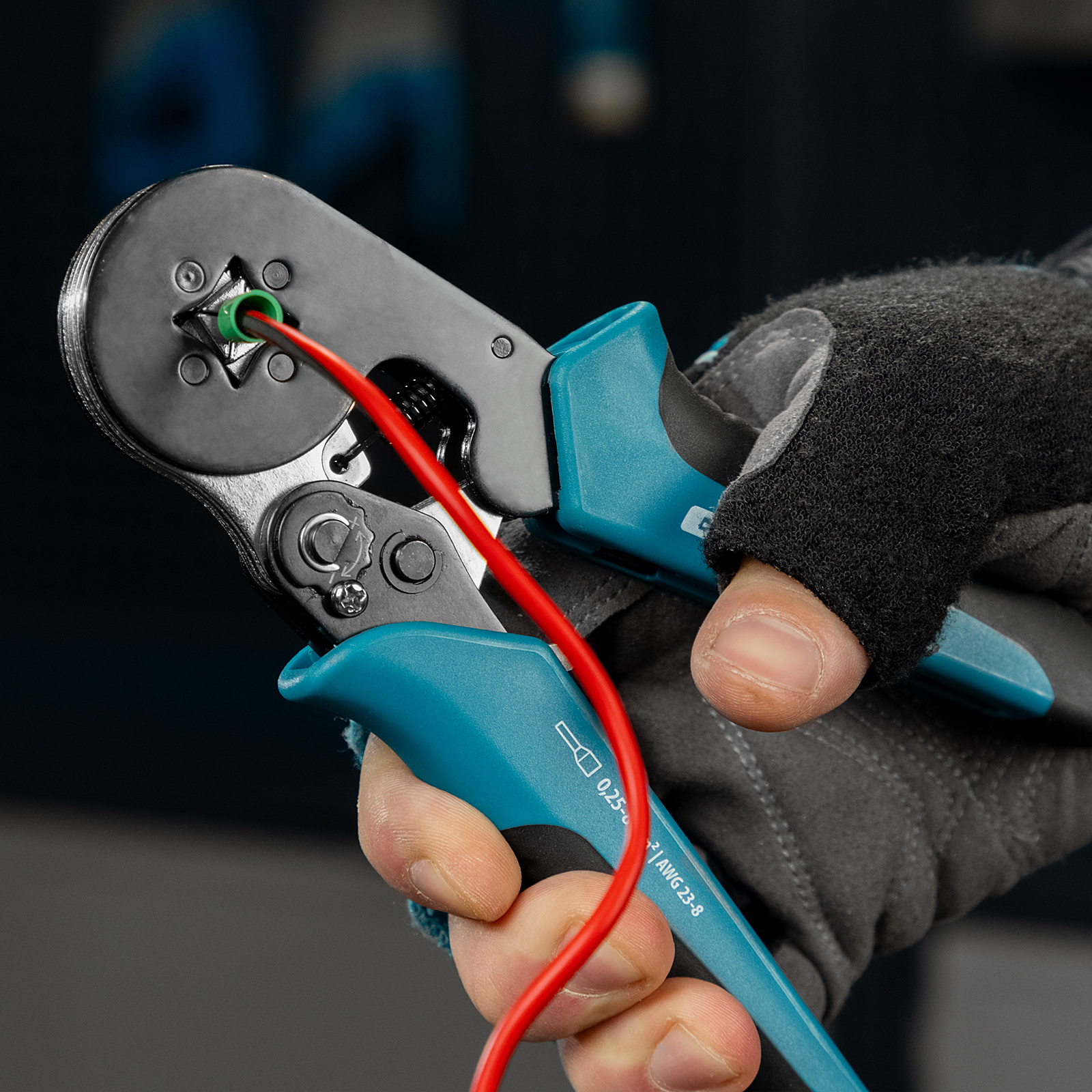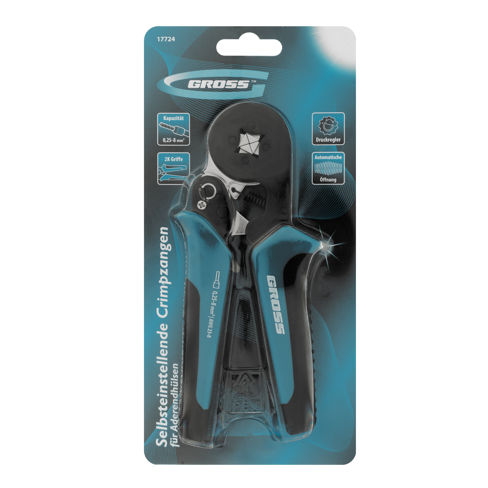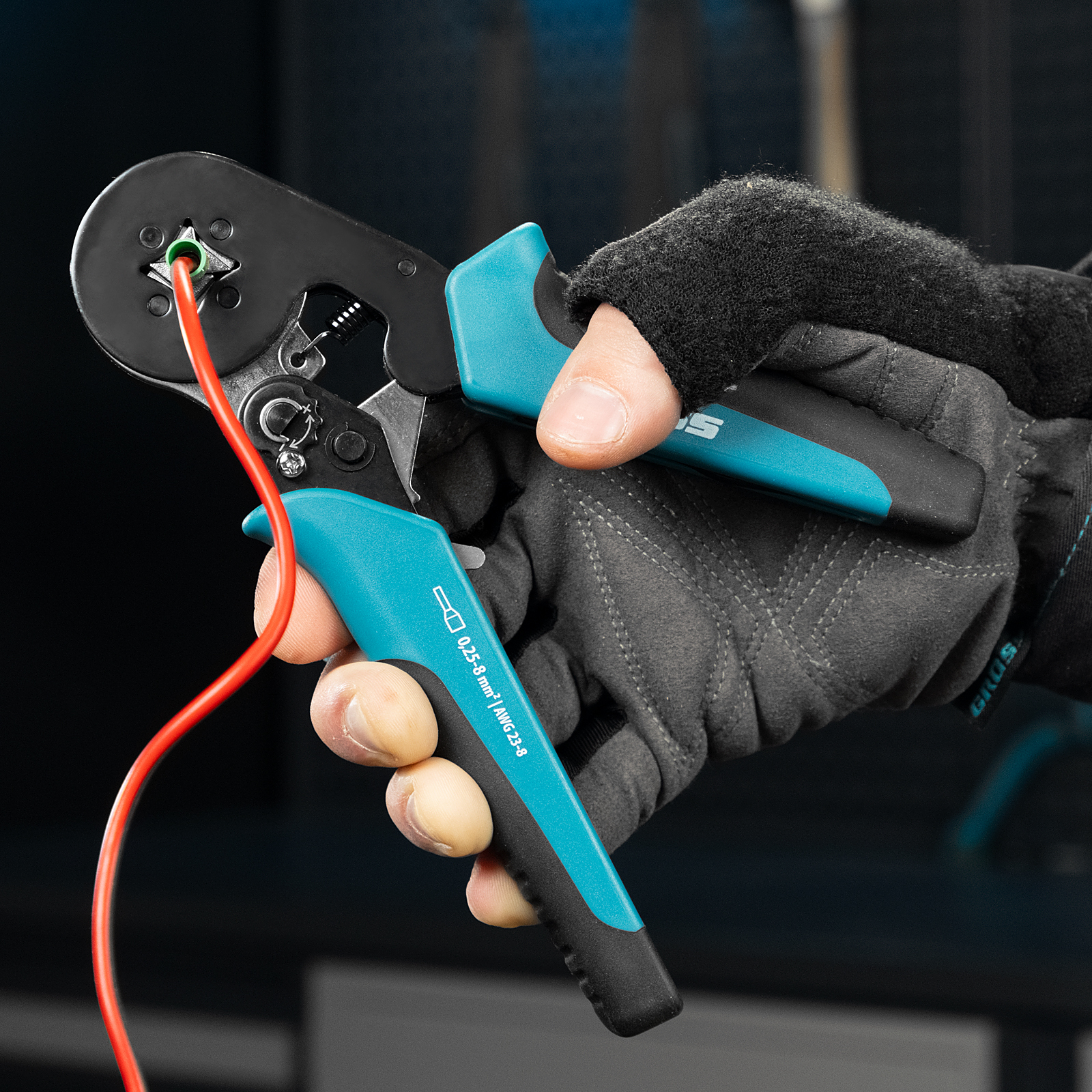 <p>Пресс-клещи Gross 17724 используются для обжима наконечников электропроводов с сечением 0,25-8 кв. мм. Позволяют быстро и точно соединить провода для подключения бытовых приборов и электрооборудования. Инструмент пригодится в быту и профессиональной сфере.</p><h2>Преимущества</h2><ul><li>Настройка усилия сжатия — 6-ступенчатый регулятор позволяет установить оптимальный режим для работы с различными проводами.</li><li>Эргономичность — функция авторазжима экономит усилия и время мастера.</li><li>Комфортная работа — двухкомпонентные рельефные рукоятки обеспечивают надежный хват.</li><li>Удобная упаковка — клещи поставляются в блистере, позволяющем осмотреть инструмент перед покупкой.</li></ul>