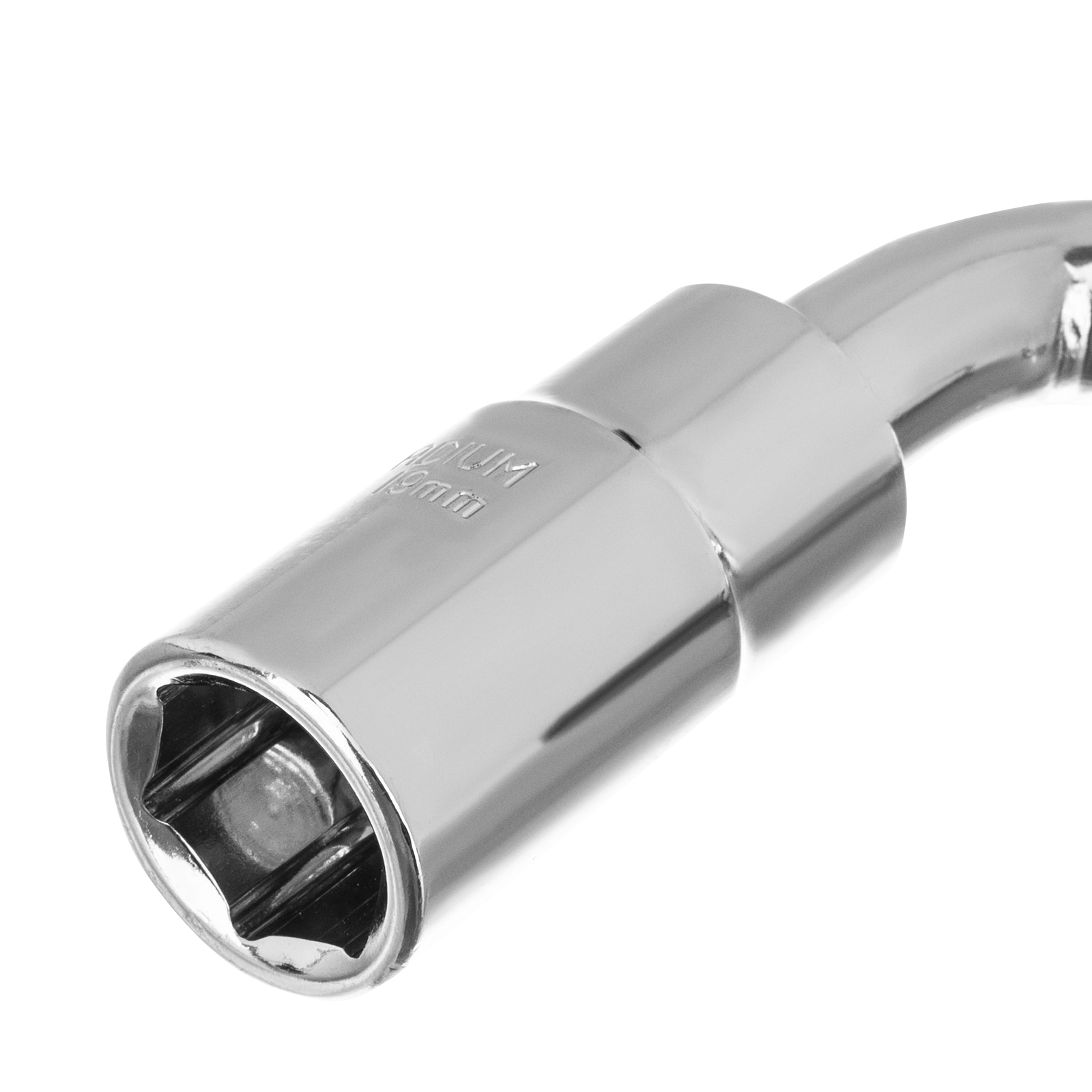Телескопический Г-образный баллонный ключ Matrix 14237 с присоединительным размером 1/2" поставляется с двойной съемной торцевой головкой 17 х 19 мм и применяется для снятия и установки автомобильных колес. Г-образная форма облегчает работу с крепежом. Ключ будет полезен в гараже, на станции шиномонтажа или в автосервисе, а также поможет быстро заменить колесо в дороге.