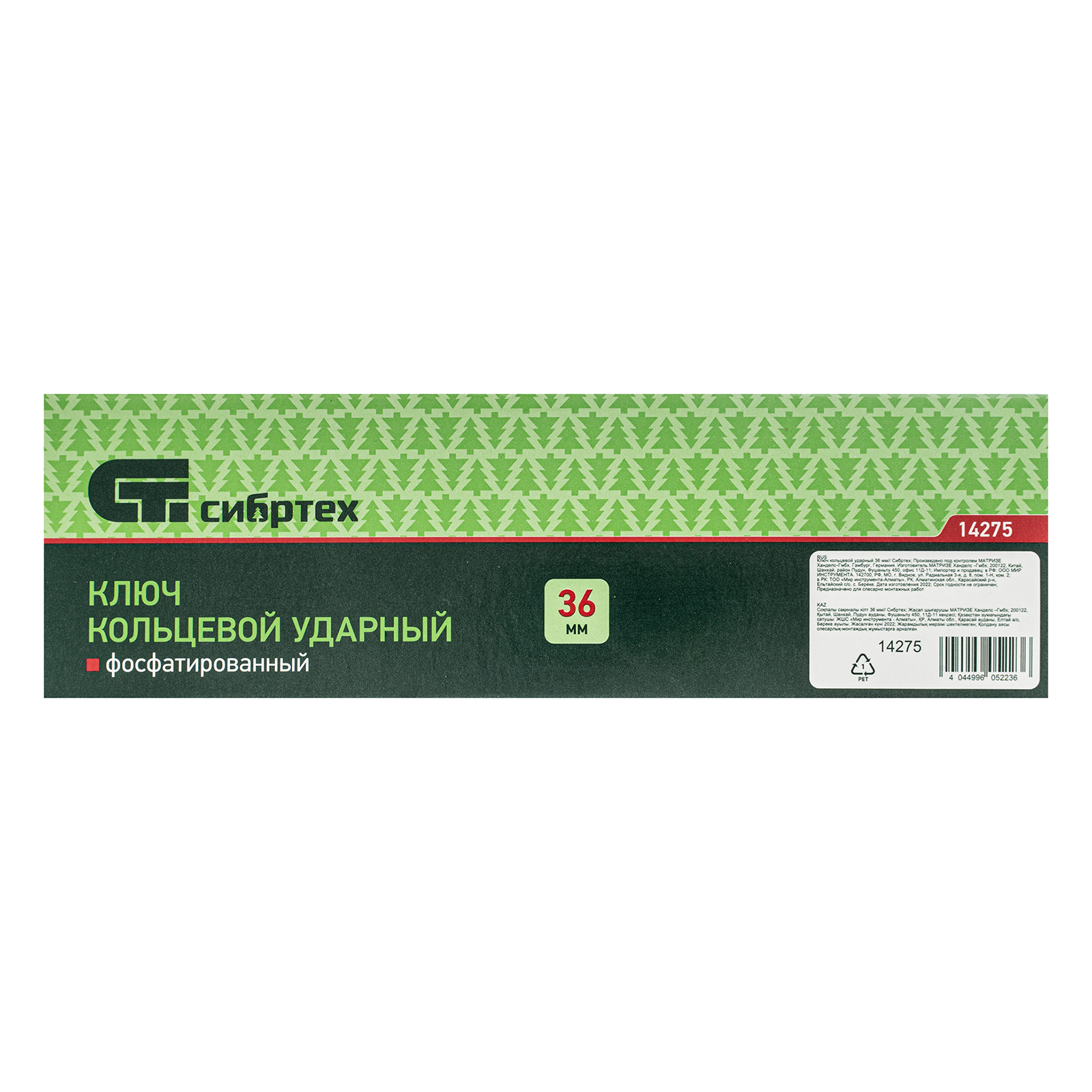 <p>Ключ кольцевой ударный Сибртех 14275 позволяет откручивать и закручивать резьбовые соединения размером 36 мм. Благодаря 12-гранному профилю надежно удерживает головку крепежа. Удобен для работы в ограниченном пространстве — для перестановки его достаточно повернуть на 30°. Инструмент применяется в слесарных мастерских, будет полезен во время ремонта, а также для решения бытовых задач.</p><h2>Преимущества</h2><ul><li>Эффективная работа с туго затянутым крепежом — одна сторона ключа утолщена и предназначена для ударных воздействий.</li><li>Устойчивость к нагрузкам — инструмент изготовлен из прочной углеродистой стали 45.</li><li>Долговечность — при производстве использована технология фосфатирования, обеспечивающая устойчивость к коррозии.</li></ul>
