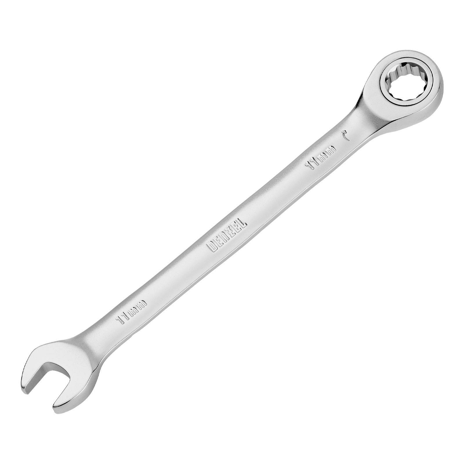 Ключ комбинированный трещоточный, 11 мм, CrV, матовый хром Denzel