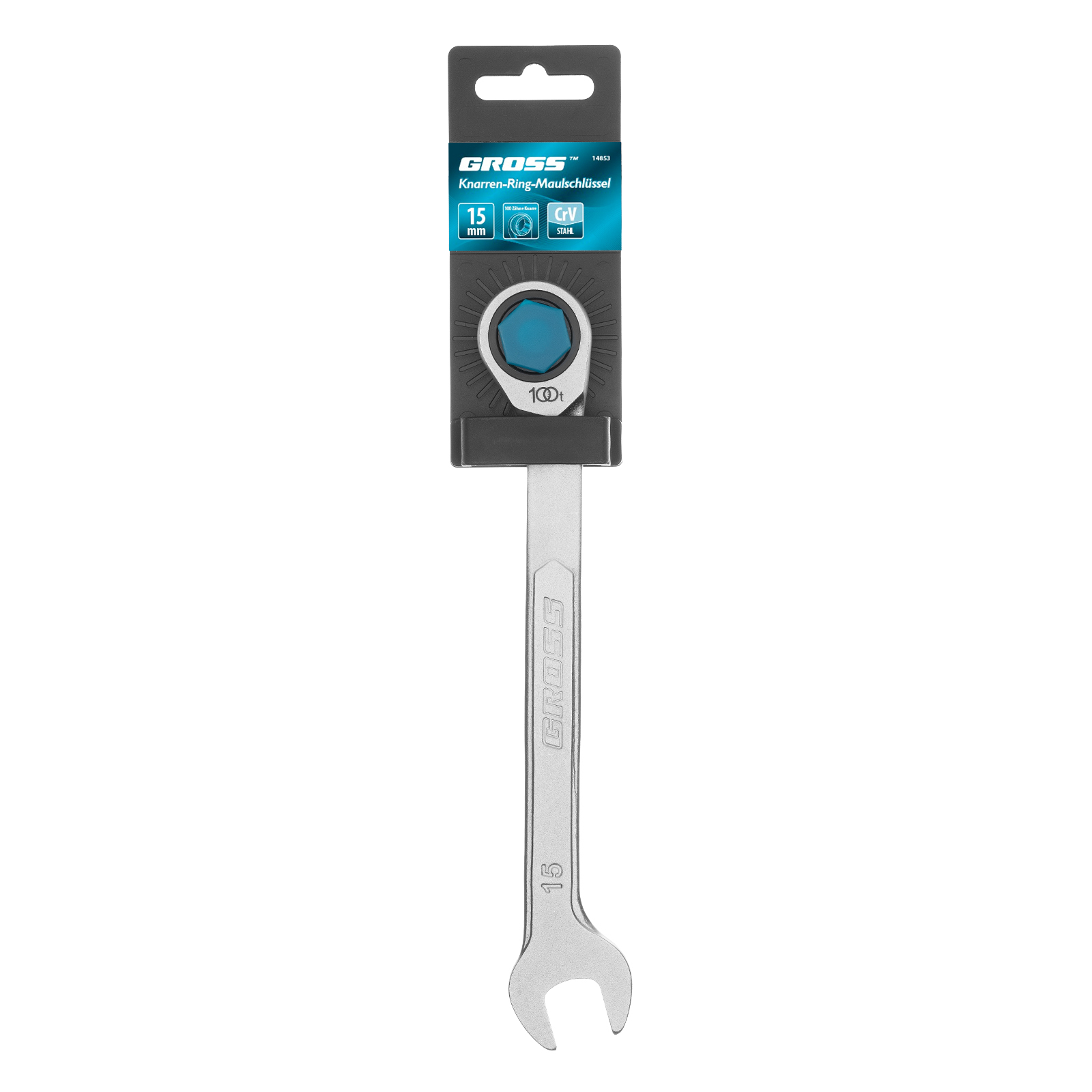 Ключ комбинированный трещоточный, 15 мм, количество зубьев 100 Gross