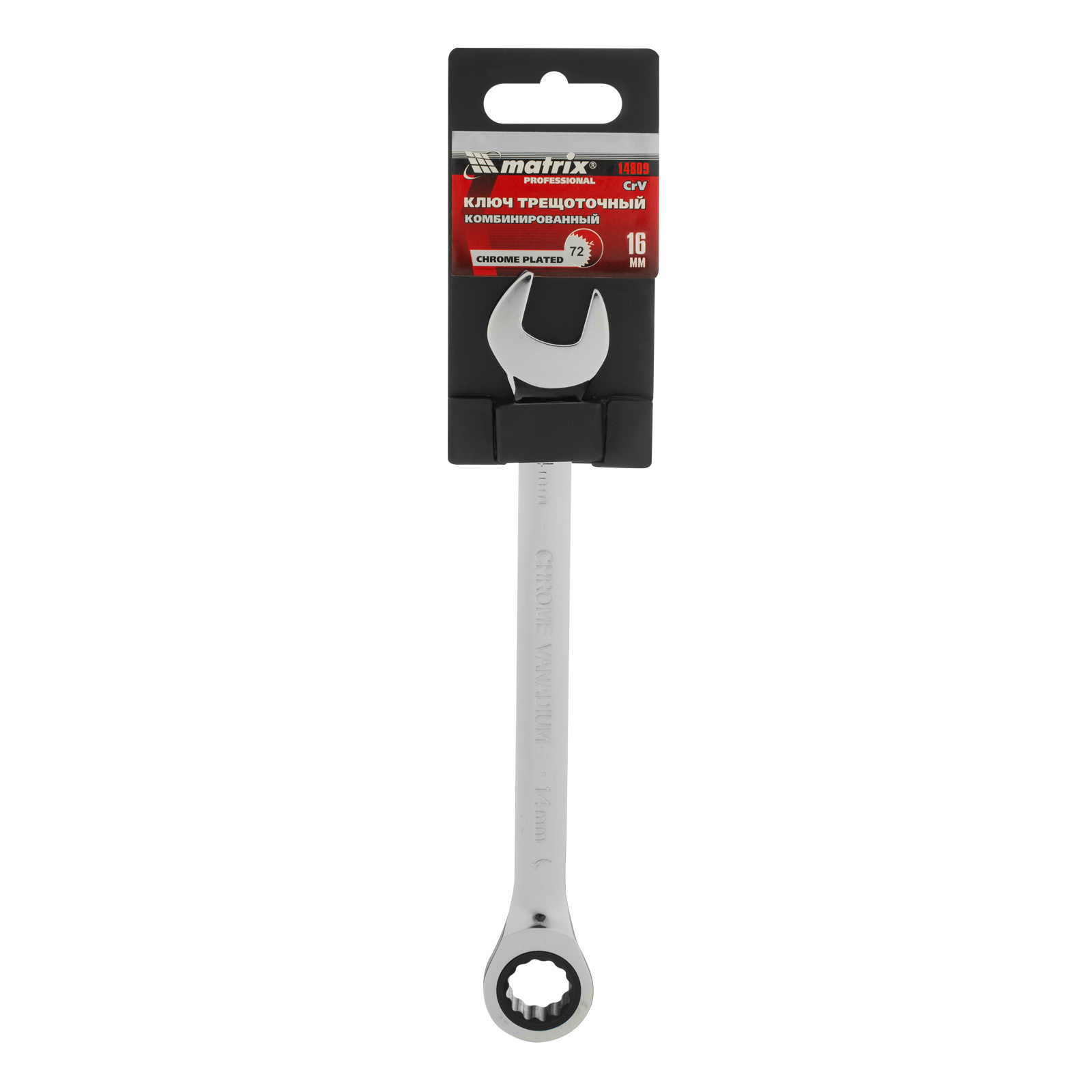 Ключ комбинированный трещоточный, 16 мм, CrV, зеркальный хром Matrix Professional